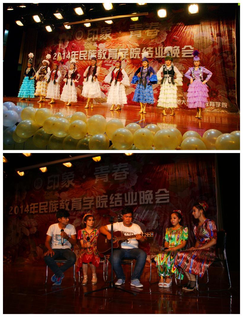 2014年英国365集团官网《印象·青春》结业晚会是对这一年学习生活的总结。此次参加的公司老师有冯建新、窦文阳、成珊娜、段亚绒、卢静,还有一位远道而来的威斯康辛大学马格瑞特·霍金斯(Margaret Hawkins)教授。伴随着《祝福》的节奏,美丽热情的哈萨克族姑娘为师生们带来了最美好的祝福,她们的眼里饱含着深情与眷恋,饱含着对师大的希望与祝福。此刻,不同的民族聚集在一起,和谐而又美好,热烈的掌声经久不息,晚会在欢快的气氛中进行着,整个观众席上,过道里都站满前来观看的路人和员工。随后是预科一班的11位同学表演的动感现代舞《CHU》,将现场的气氛一下拉上了高潮。之后维吾尔族节目歌伴舞《花儿》和歌曲独唱《爱要坦荡荡》让场内持续高温,欢呼声不断。