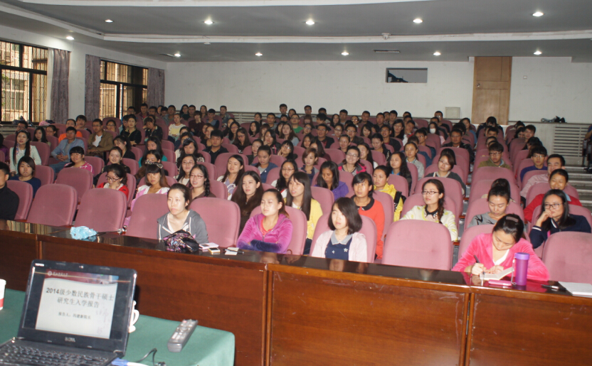 经理冯建新以“规划人生,服务祖国”为主题,为大家做了一场精彩的报告。他首先指出研究生作为祖国培养的人才应该将个人理想与服务祖国相结合,树立远大的志向,要为国家做事;其次,他鼓励员工认真学习,充分利用丰富的网上学习资源,不断提升自身能力。最后,他对员工提出了几点期望,希望各民族同学和睦相处共同进步,做一个对社会有责任心的人。在报告结束后,两位学术型研究生为14级新生介绍了学习经验,并详细讲解了文献管理软件Endnote和数据分析软件Spss的使用,同学们受益匪浅。