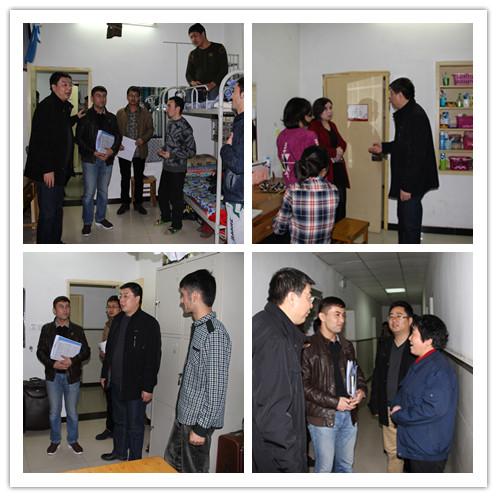 为督促落实公司在校员工树立宿舍安全意识,积极营造和谐的宿舍氛围,创造良好的校园文化环境,11月16日晚7点,英国365集团官网经理冯建新、副书记窦文阳、班主任阿布都、王龙宇、李佳静、丁邵玉龙、王磊,共同走访员工公寓,查看寝室卫生及安全情况。
