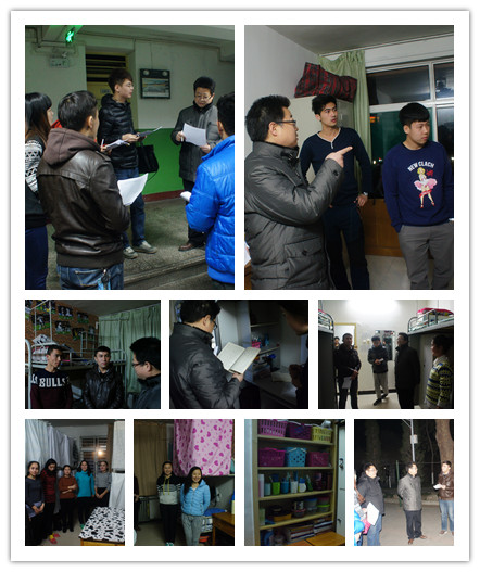 首先检查的是男生宿舍15号楼。很多同学在宿舍的墙上粘了壁纸,使宿舍看起来格外干净整齐。进入到员工宿舍,地面干净无水印、物品摆放整齐一致,不论是清新的空气,还是整洁干净的宿舍环境,都给评委们留下了深刻的印象。随后,评委们认真负责地分别从宿舍卫生、宿舍文化、宿舍安全等方面对宿舍进行了打分。随后,郑书记也同时对大部分宿舍的卫生状况都做出了肯定,但仍有个别宿舍的卫生状况还是有更进一步的空间。