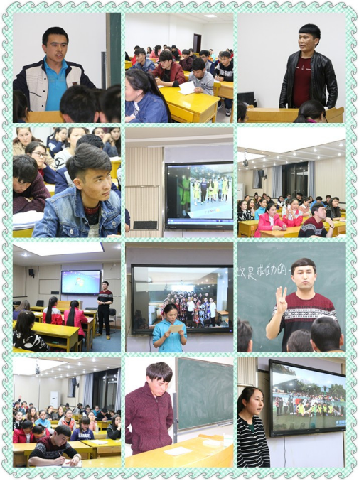 座谈会分两个环节进行,第一个环节是“预科生活回顾”,员工分成小组,在组内分享上学期学习生活的体会与和收获。一些小组代表将班级生活照制作成电子相册的视频播放给大家,回顾上学期的预科校园生活,给大家展示了预科生活中的点点滴滴,使大家回想和反思了过去的时光和记忆。另一些小组总结了上学期的预科学习生活,在动感的背景音乐下朗诵了小组成员对预科生活的感悟和感激。随后,辅导员热依木老师提议同学们展望新学期,每个人制定一份新学期的学习成长计划。