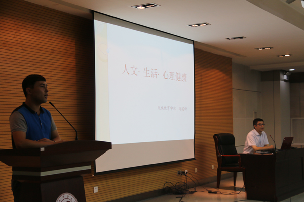 8月30日下午14:30,公司2016级预科新生入学教育系列讲座第一讲在崇鋈楼归仁堂开讲。本次讲座由公司经理冯建新教授主讲,讲座的题目为《人文·生活·心理健康》。公司2016级预科专职辅导员热依木、兼职辅导员蒙桂芳、王龙宇和370名全体预科新生参加了此次讲座。