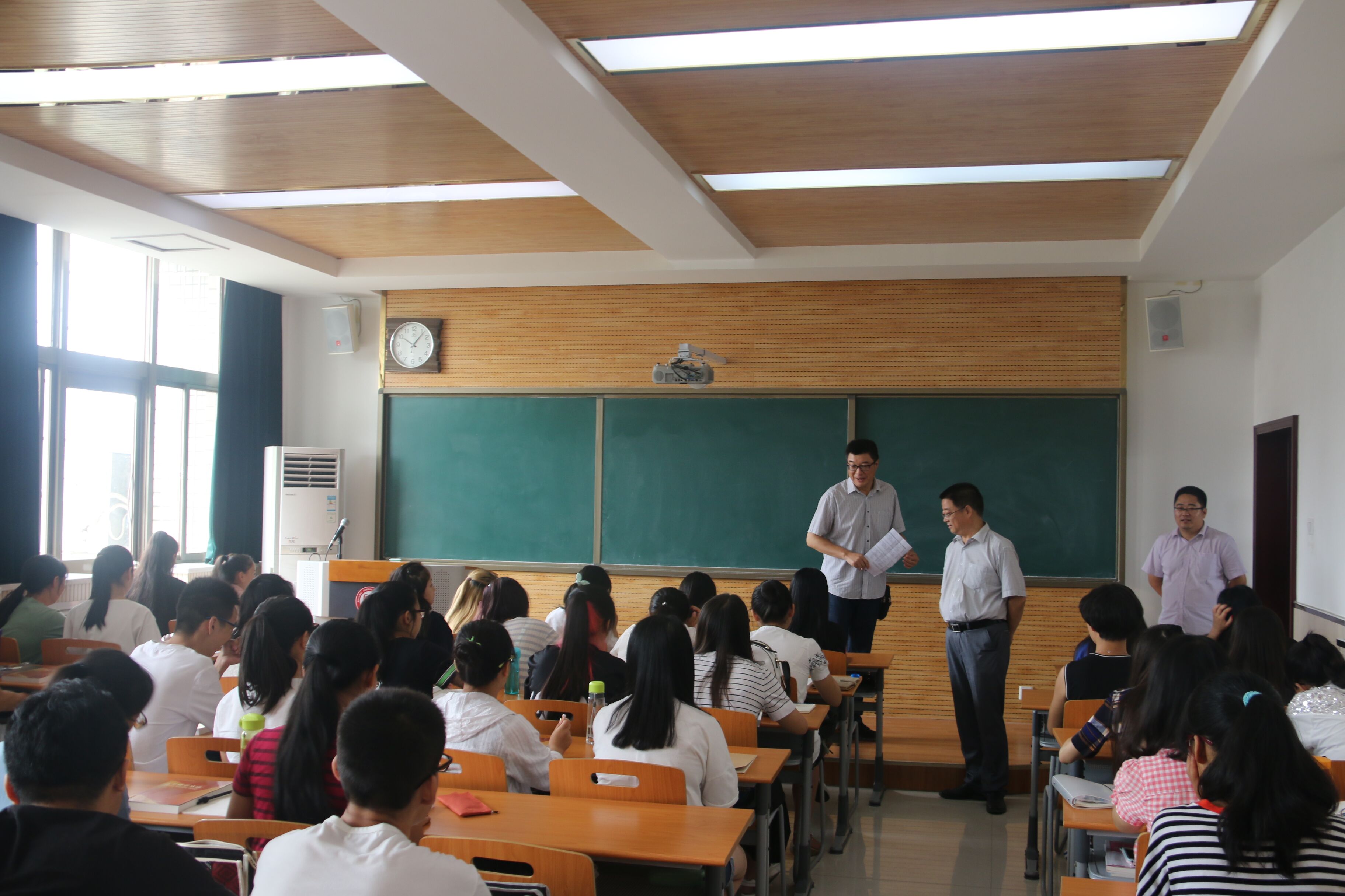 为了解新学期公司教学运行情况,保证新学期良好的教学秩序,9月5日上午,公司经理冯建新、党总支书记郑生忠、副经理兼党总支副书记窦文阳,以及专兼职辅导员和教学秘书深入教学九楼、八楼、六副楼,对公司师生上课情况进行了细致的检查。