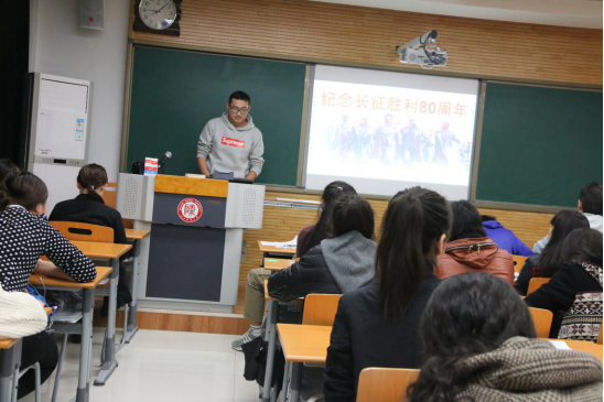 10月22日下午,公司组织预科二班全体员工在9号教学楼继续学习长征精神。活动开始,同学们在团支书孙丽婷的带领下一起阅读了《丰碑》等长征故事。随后,全体同学观看了《左力,一个人的长征》视频,纪录片导演,著名摄影家左力先生说:“有人说红军已经死了。我觉得红军就在路上,就在老百姓心中,就在升起的袅袅炊烟之中。有时候,行路前老乡会悄悄在我包里塞上馒头和橘子,太令我动容了。红军没有死,老百姓心里还装着红军呢!”观看后谈及感受,田杰同学说:“在长征中,党和红军经历了常人难以想象的磨难,他们战胜了困难,将这些可贵的精神财富留给了我们,他们用亲身经历向我们诠释了长征精神的含义,在当今社会中,我们更应该发扬长征精神,并赋予它新的内容,为它注入新的活力,在学习工作和生活中艰苦奋斗。”此外,活动中还开展了长征知识问答比赛,比赛中同学们积极参与,热情洋溢,共同学习红军长征历程。