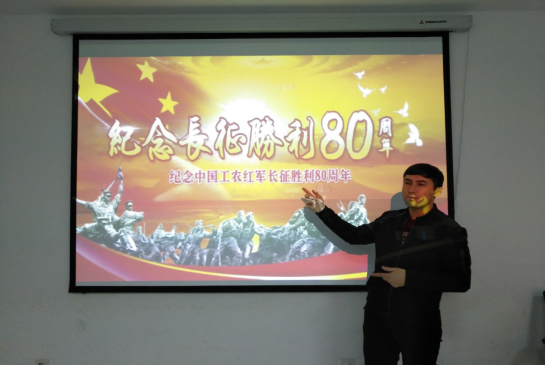 10月23日下午,公司预科五班在六附楼211教室召开学习长征精神师生座谈会,专职辅导员热依木和全体同学参加了座谈会。此次座谈会上热依木老师向大家介绍了红军长征的历史背景和意义,向同学们讲述习近平总书记在纪念长征胜利80周年大会上的发言内容,重点强调了习近平总书记提到的四个“伟大远征”。团支书麦菊丹带领同学们欣赏了长征纪录片,观看后,同学们踊跃上台发言。此次师生座谈会上,辅导员对员工提出几点希望:第一,希望同学们珍惜民族预科教育优惠政策,以德为先,勤奋学习;第二,希望同学们在生活和学习当中弘扬长征精神,从自己做起,不断传承长征精神。第三,自觉维护民族团结,要在事迹行动中践行长征精神,做新世纪最勇敢的长征者!