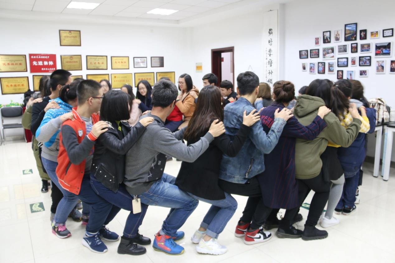 此次活动在第一期团辅活动的基础上顺利展开。活动开始,由辅导员蒙桂芳介绍本次活动的意义以及流程。本期第一环节为“组队漫画”, 分组并让各小组设计各自团队的队名、口号、创作队徽、队歌和队训,并展示在漫画中,目的是建立团队契约,形成团队氛围。在建立团队后,老师及员工们一起参与了“妙手解开千千结”和“人椅”等活动,锻炼了小组成员团结协作、解决问题的能力,加强了团队成员间相互信任与合作意识,培养了队员勇于解开人与人之间的“结”和主动化解工作中遇到矛盾的广阔胸襟。