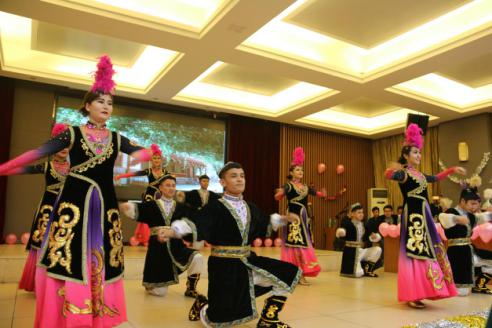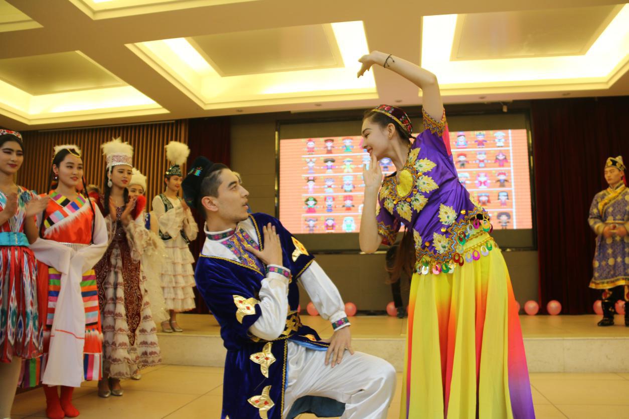 开场舞《DADDY》成功地调动了现场气氛,点燃了每一位观众的热情。随后,由茹曼古丽等带来的维族舞《花园》更是吸引了大家的眼球,绚丽的服装,维族同学们特有的舞蹈天赋都让观众们欢呼声不断。紧接着,合唱《欢乐之歌》宛转悠扬,让观众们沉浸其中。由员工会同学带来的小品《员工会竞选》紧随其后,小品在风趣幽默的同时阐述了每一位员工干部积极准备员工会竞选的故事。整个晚会精彩纷呈,高潮迭起,表演形式丰富,内容新颖。傣族舞《傣韵悠悠》,乐器混奏《天空之城》、《成都》,串烧《民族走秀》,歌曲《IF YOU》,冬不拉合奏《娇美的姑娘》、《青春之歌》,现代舞《DANCING KING》等都为在场师生上演了一场视听盛宴,无不彰显少数民族的风采,展现青春的活力。由民硕员工干部带来的话剧《后宫选妃记》更是将晚会推向了高潮,幽默的语言加上同学们激情的表演,让现场观众捧腹大笑。朗诵《民族团结之歌》寓意着英国365集团官网是一个相亲相爱的大家庭,各少数民族在大家庭中和睦相处,团结互爱。穿插其中的互动环节《猜猜看》拉近了师生距离,同学们积极参与,会场气氛热烈。最后,晚会在哈萨克族舞《歌舞青春》的欢快氛围中接近尾声。晚会临近结束,公司党总支副书记窦文阳对此次晚会给予肯定,他认为此次晚会是公司各民族员工干部精心准备的,将各民族风采很好地呈现出来,也展示了公司少数民族员工积极向上的精神面貌,希望同学们再接再厉,潜心学习,努力提高自己的综合素质!