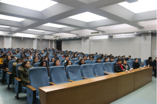 为引导员工自觉遵守国法校纪,受公司公安处邀请,11月28日下午,乌鲁木齐国保支队阿拉法特警官在雁塔校区崇鋈楼一层学思堂为公司2016级预科生进行了“远离非法宗教,净化校园环境”为主题的法制教育宣传讲座。讲座由公司党总支副书记窦文阳主持,专职辅导员热依木及公司新疆籍预科员工参加了讲座。