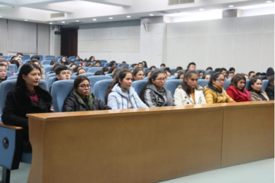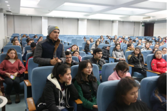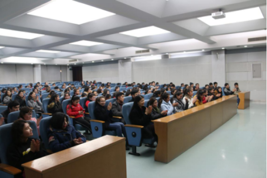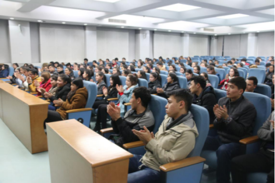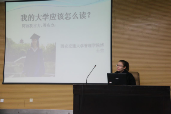 12月2日 晚七点,公司职业生涯规划指导讲座之“我的大学应该怎么读?”在公司雁塔校区崇鋈楼学思堂开讲。讲座由新疆内派服务管理教师、西安交通大学管理公司博士生、全国中级就业指导师、全国二级心理咨询师阿热孜古力·吾布力老师担任主讲。由新疆内派服务管理教师迪力努尔主持,陕西省委高教工委学工部副部长库来西‧依不拉音、公司员工处挂职干部伊尔夏提老师及公司新疆籍预科员工参加了讲座。