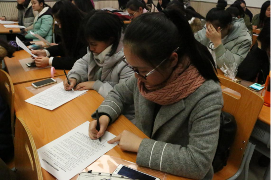 12月22日下午五点,兼职辅导员刘雅丽组织2016级本科预科3班、4班全体员工在九教楼9705教室招考期末考试动员大会。刘老师用通俗的语言向预科员工说明了考试的公平、公正以及期末考试的重要性,提出“诚信考试,公平竞争”,并用学习金字塔举例说明学习的习惯,希望同学们能从被动学习转向主动学习,为预科结业升学做好充分的准备。动员会上,员工们签订了考试承诺书,同学们发放了透明文件袋。