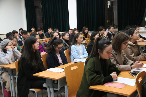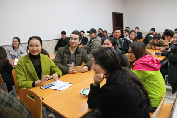在预科七班座谈会中,我们了解到此次寒假与以往不同的是,大多数同学都参与了实践调研活动,通过走访的形式,了解家乡的变化以及汉语教学在当地开展的情况。“在寒假社会实践调研活动中,我通过走访家乡的父老乡亲,了解到双语教学的重要性,我开办了小型汉语培训班,为家乡的小孩们教授汉语,为家乡的人提高汉语水平尽自己的绵薄之力”,这是预科七班来自新疆喀什的艾克拜尔同学在座谈会中说到的一段话,同学们都为其开办汉语培训班的做法点赞,并纷纷表示在公司预科学习阶段,汉语和母语的表达都有了很大的进步。