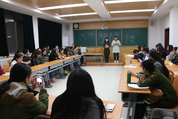 在预科六班的座谈会中,同学们分组围坐在一起分享上学期学习生活的体会与收获。一些小组代表将班级生活照制作成电子相册视频播放给大家观看,回顾上学期的预科校园生活,展示预科生活中的点点滴滴。一些小组通过配乐朗诵表述预科学习生活的感悟和对公司的感激。也有些小组通过幻灯片的展示和讲解,共同分享离家一学期后家乡的变化。