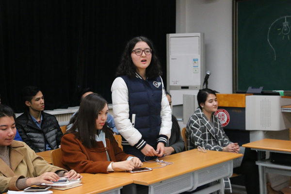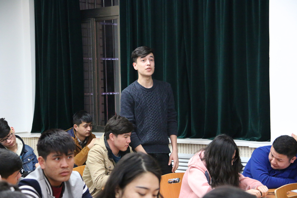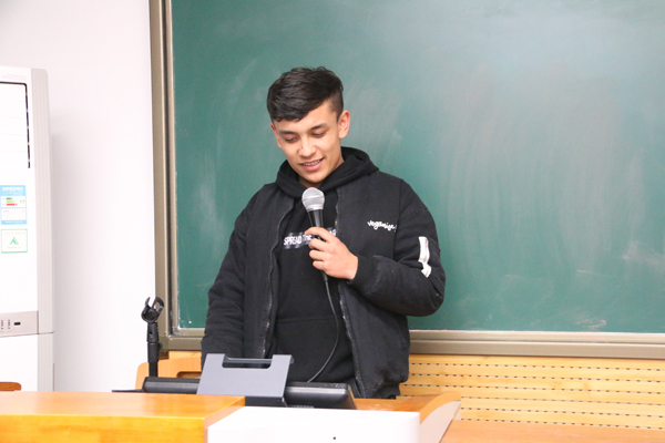 预科三班来自新疆和田的伊卜拉伊木向大家讲述了寒假在家乡社区参加政治学习的过程,充分体会到国家的富强和家乡的建设是要靠每个人的辛勤努力去实现的,表示今后会更加努力学习,提高自身文化水平,为家乡的建设做出自己的努力。