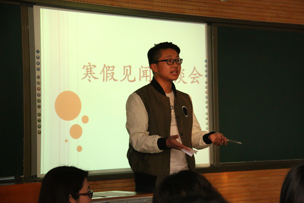 辅导员热依木在总结中表示,通过同学们寒假生活以及实践活动的介绍,感受到了同学们“爱祖国、爱家乡”的情怀,对大家能够从自身做起,将自己的假期生活过得丰富多彩表示赞赏。同时他希望同学们在新的学期中能够不断努力,共同进步,将自己最好的一面展现出来,绽放出最美丽的“中国梦,预科梦”。
