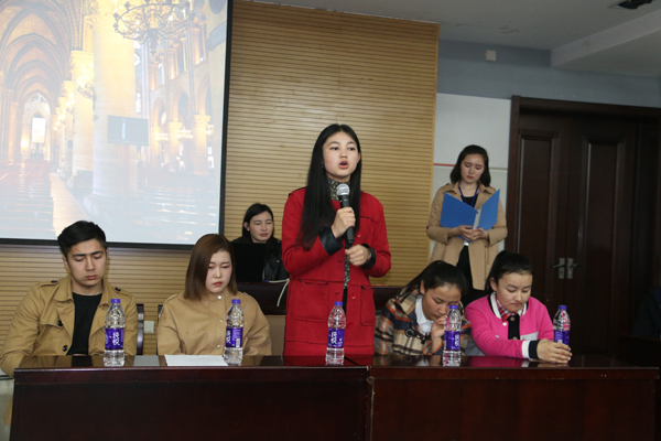 交流会上,辅导员热依木老师向大家介绍了莅临本次交流会的各位评委和老师,并给大家简要回顾了上期读书交流会的主要内容和成果。本次读书交流会主要以小组讨论答题的方式进行,各班同学共派出四组代表参加答题。交流会共分为四个环节,大家通过观看幻灯片来回顾《巴黎圣母院》这本书的作者、主题思想、情节发展等相关内容及问题,之后以抽签的方式选出每组回答问题的同学,评委组通过员工讲解内容、语言表达、形象风度、整体印象、会场效果等多方面进行综合评分。经过评委老师热烈的讨论和同学们积极的答题,最终由预科5班对夏阿力带领的第一组同学荣获本次交流会的冠军,预科7班加沙尔带领的第二组获得亚军,预科6班塔恩努尔带领的第三组获得季军。