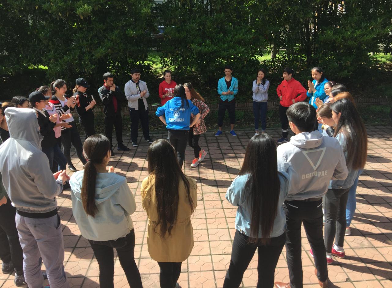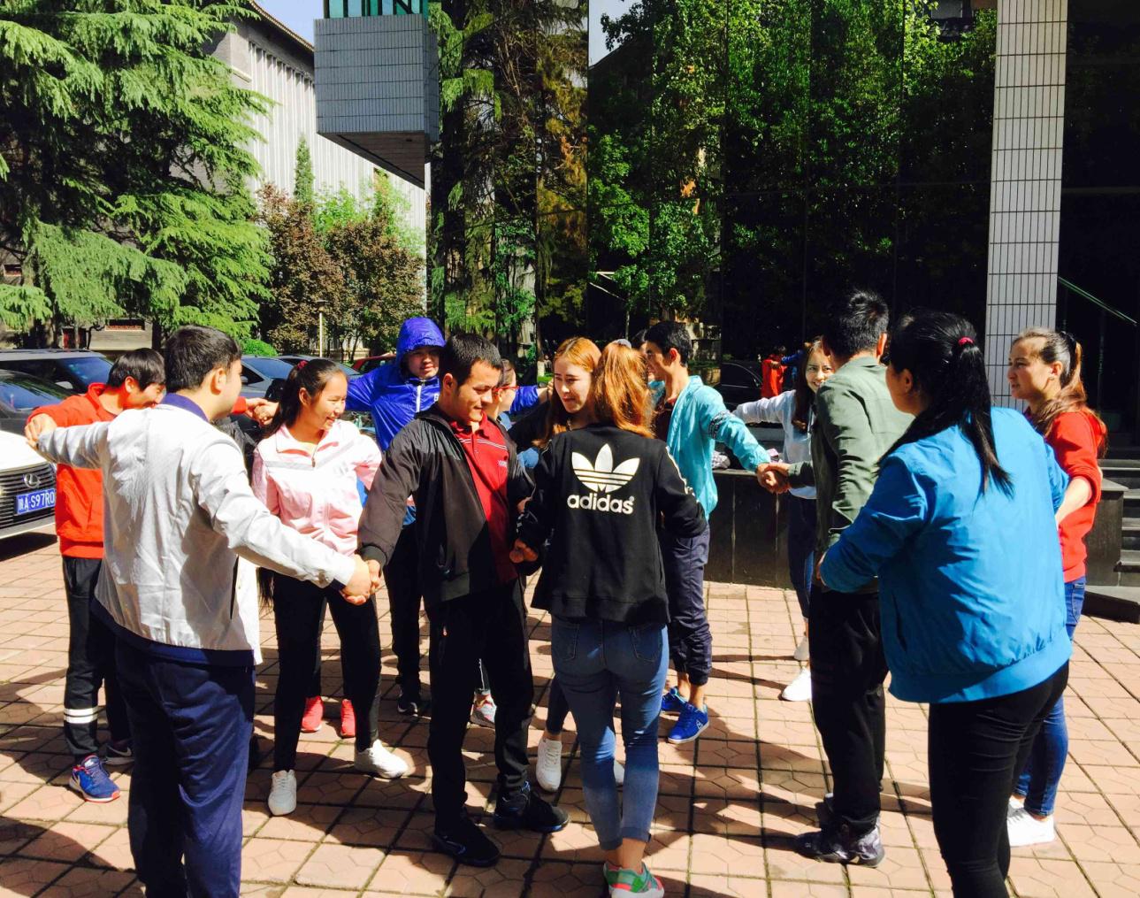 此次的心理健康教育活动以游戏方式进行,由班级心理委员娜孜依古丽组织。活动中每一位同学都积极参与,在“心有千千结”环节中,全体同学分成两个小组,每组成员手拉手围站成一个圆圈,并记住自己左右手各相握的人。首先,在节奏感较强的背景音乐中同学们放开手,随意走动,在音乐结束时,同学们停止走动并迅速与原来左右手相握的人握手。小组中所有参与者的手都彼此相握,形成了一个错综复杂的“手链”。在节奏舒缓的背景音乐中,主持的同学要求大家在手不松开的情况下,用各种方法,如跨、钻、套、转等,将交错的“手链”解成一个大圆圈。其次,在“一块五毛”这项游戏中男生是一块,女生是五毛,主持人喊出一个价格,所有同学迅速自由组合相加,抱在一起,相加时多了或少了的队排除一个同学来表演节目了。最后,在“刮大风”中没有座位的人,发号命令就是刮大风,比如他说“刮所有男生”,那所有男生必须起身换个位子,这时他就可以趁机坐下,没有抢到座位的同学接受惩罚进行表演节目。