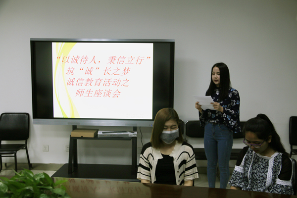 “筑诚长之梦”师生座谈会上,预科五、六、七班的同学们通过多媒体观看幻灯片,详细地了解诚信教育的意义、内涵及重要性。针对目前在高校中出现的同学之间缺乏信任、当代老员工的我们该如何去做诚实守信的接班人等一系列问题和内容,同学们畅所欲言表达着自己对诚信的理解。各班派出代表叙述自己对诚信的理解,就诚信教育的作用及大家如何才可以真正地做到诚实守信这两方面展开了座谈。同学们五从现实社会及日常生活、集团言行、假期兼职、家庭教育为出发点,列举了很多有关诚信的感人事例。同学们表示无论在学习、生活、还是工作中都很有信心并坚持做到说老实话,办老实事,做老实人,把诚信教育继续发扬光大。辅导员热依木老师总结道:“作为高校少数民族辅导员,也作为高校一名普通教师,我的任务是教书育人,服务育人,在我自己的工作当中也处处离不开诚信,否则就会失去同学们的信任。希望大家从自身做起,诚实守信,努力实现自己的梦想,实现人生的价值。”