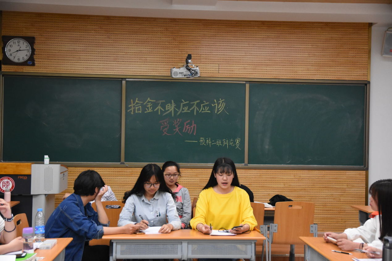 “以诚待人,秉信立行”辩论赛中,预科2班的同学举行了以“拾金不昧应不应该受到奖励”为辩题的辩论赛。辩论赛分为陈词阶段、盘问阶段、自由辩论阶段、观众提问、总结陈词五部分。在立论阶段,双方辩手就初露锋芒,蓄势待发,双方二辩三辩的交锋更是激烈。在自由辩论环节,双方激烈交锋,达到了辩论赛的高潮。观众现场提问,不仅让其他同学都能参与进辩论,也让辩手们多了展现自己的机会。最后双方选手现场总结陈词。通过辩论赛,不仅使同学们树立了正确的诚信观,而且还为少数民族同学们提供了一个提高汉语普通话口语表达的平台。同学们说,这场辩论不仅带给他们一场视觉听觉上的盛宴,也让他们知道作为老员工肩负着引领校园风气发展的使命。