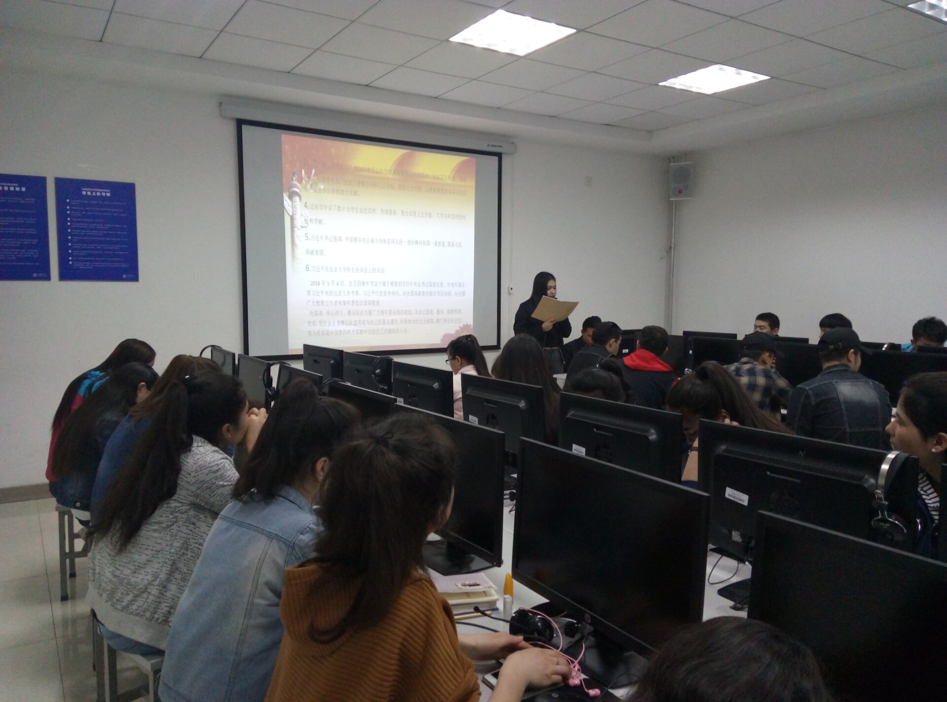 为进一步传承和弘扬五四精神,弘扬中华民族伟大的爱国主义精神,深入贯彻落实党的十八届三中四中五中六中全会精神,团结引领广大青少年以奋发向上的精神状态迎接党的十九大, 将五四“自由,平等,民主,科学”精神和公司“弘美厚德,借古开今”的校训结合起来,于4月27日,在六附楼211教室公司2016级两年制预科6班组织开展“不忘初心,砥砺前行”为主题的班会。通过本次主题班会同学们感受到了先进思想与青春正力。班会上团支书和学习委员带着大家学习了团章和习主席重要讲话,习主席的一句“自胜者强,自强者胜”引起了大家的共鸣。最后班长做出总结:“作为大学青年第一该有理想,有目标,通过自己的不懈努力给自己的未来规划好道路;第二该有魄力,学会独立,遇事冷静,学会思考,不忘初心,砥砺前行。