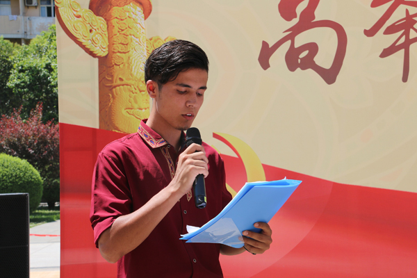 预科七班土力法尔作为优秀员工代表发言,他表达了对伟大祖国的感激之情,号召同学们自觉自信的传递正能量。
