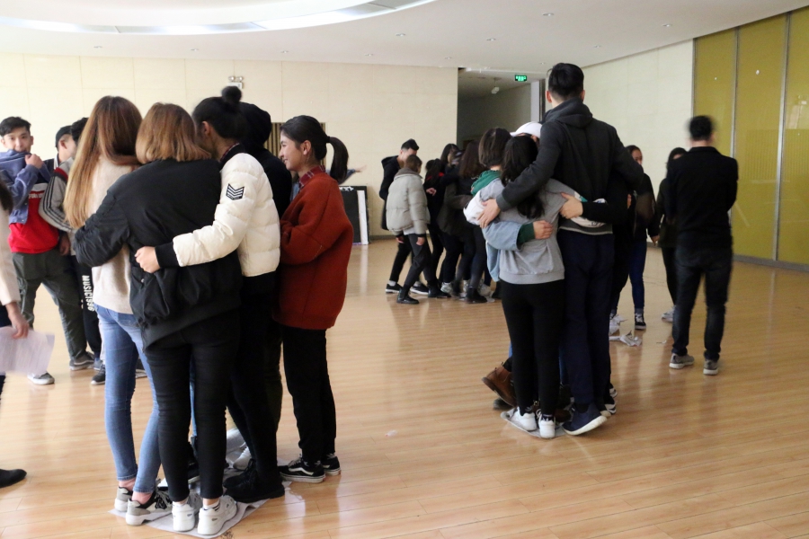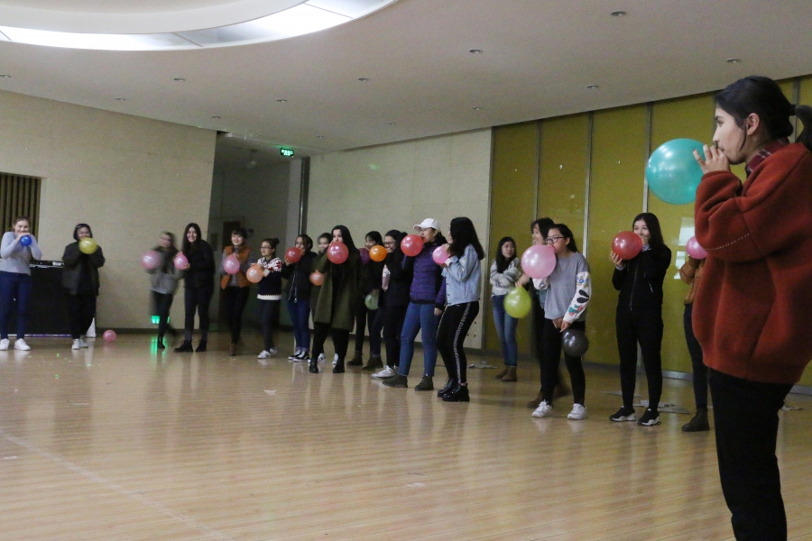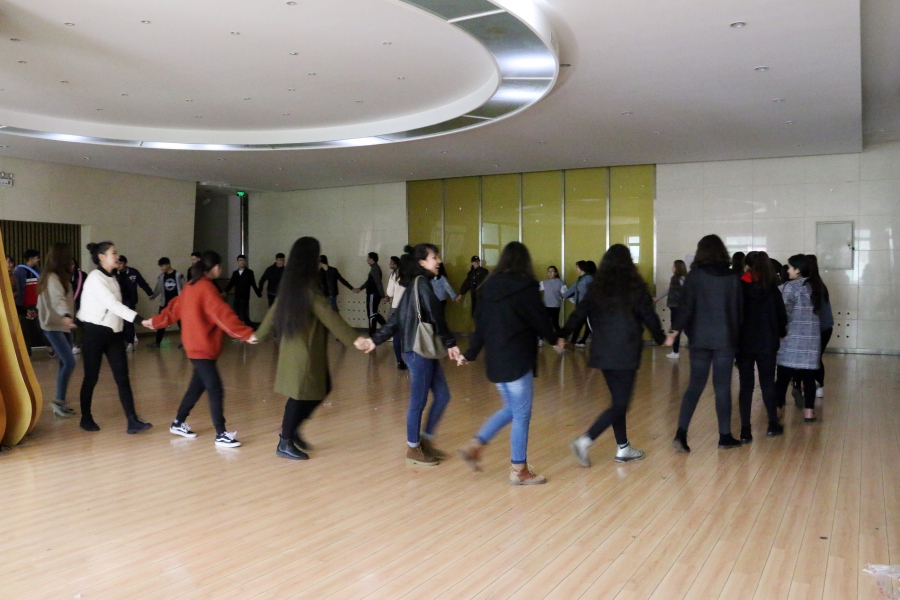 活动前,预科三班兼职辅导员高凤荣老师就举行团体心理辅导活动的整体要求和注意事项做了简单的讲解。主持人介绍本次活动主题及活动内容之后,带领全体同学开展“破冰之旅—接龙、放松; 无家可归”、“助人受助——盲行”、“同舟共济”、“心有千千结”、“吹气球,减压力”等互动游戏。每一个游戏都在愉悦的氛围下圆满结束,活动过程充满欢声笑语,同学们都积极参与,建言献策,发表自己的看法。活动最后,同学们欢快地跳起了民族舞蹈,表达收获的好心情。