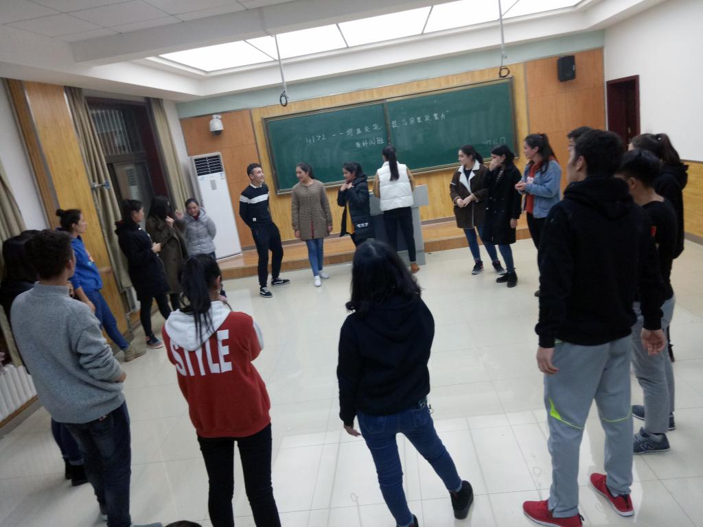 各班开展活动之前,各班辅导员就举行团体心理辅导活动的意义、整体要求和注意事项做了简单的讲解。各班心理委员介绍本次活动主题及活动内容,并且详细地给同学们介绍了接下来要进行的游戏的规则。一听到可以进行紧张刺激而又不失乐趣的团体游戏,同学们不再那么拘谨,一张张脸上都写满了期待,气氛也渐渐活跃起来。