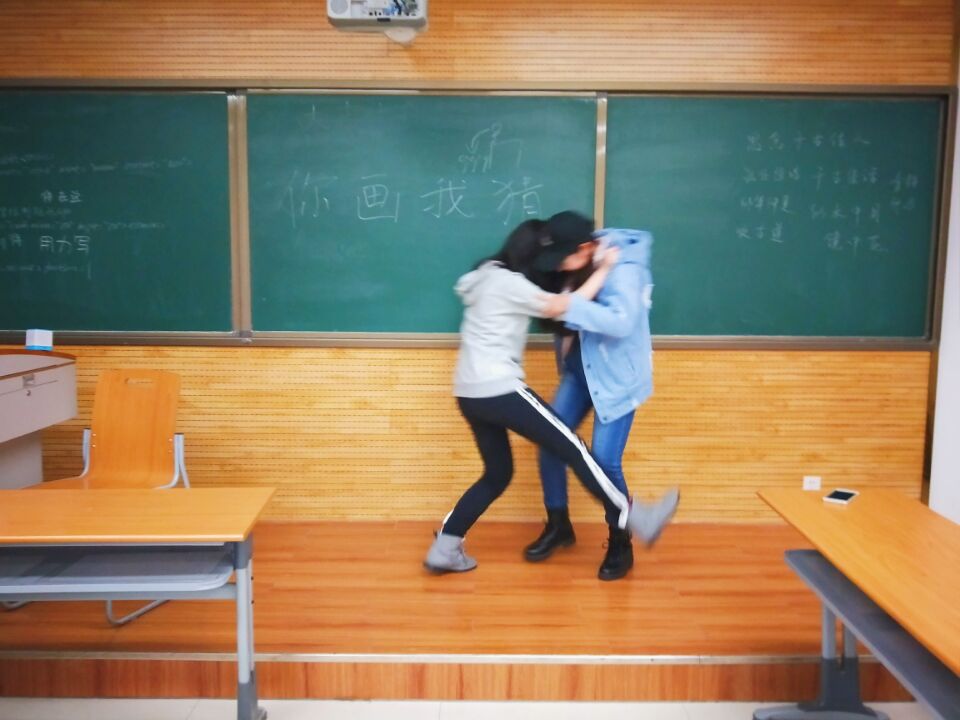 活动第一项为“你画我猜”。在此环节,有三组同学上台来进行竞争比赛,看谁猜出的词语最多。一名同学来通过动作、语言等方式来让另一位同学猜出相应的词语或者是成语。三组同学配合默契,游戏过程之中台下的观众们也看的津津有味。其中杨洋、袁敏、于佳淼组合猜出的词语最多,最终取得了胜利。张慧宇组合猜出的词语最少最终收到了惩罚。