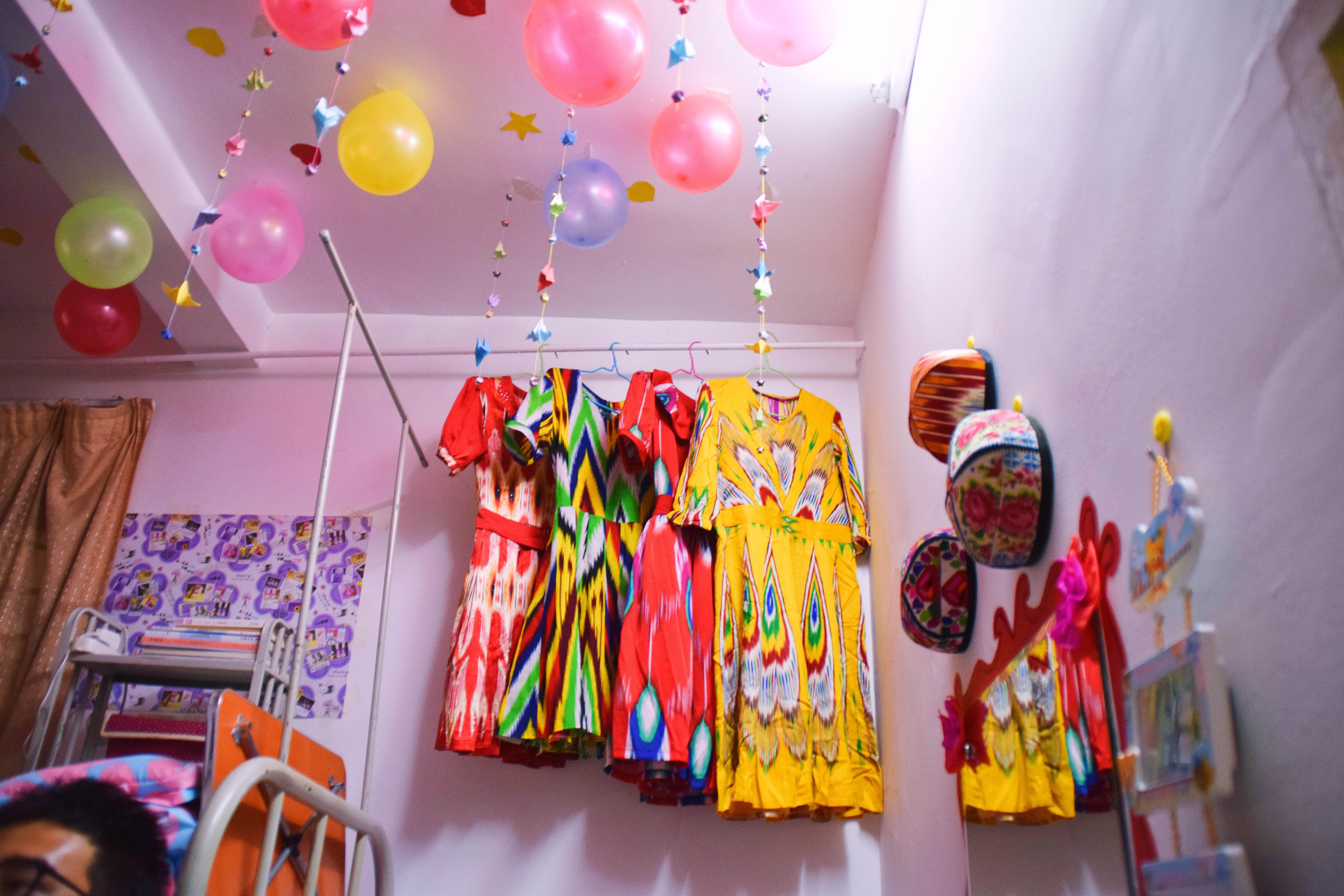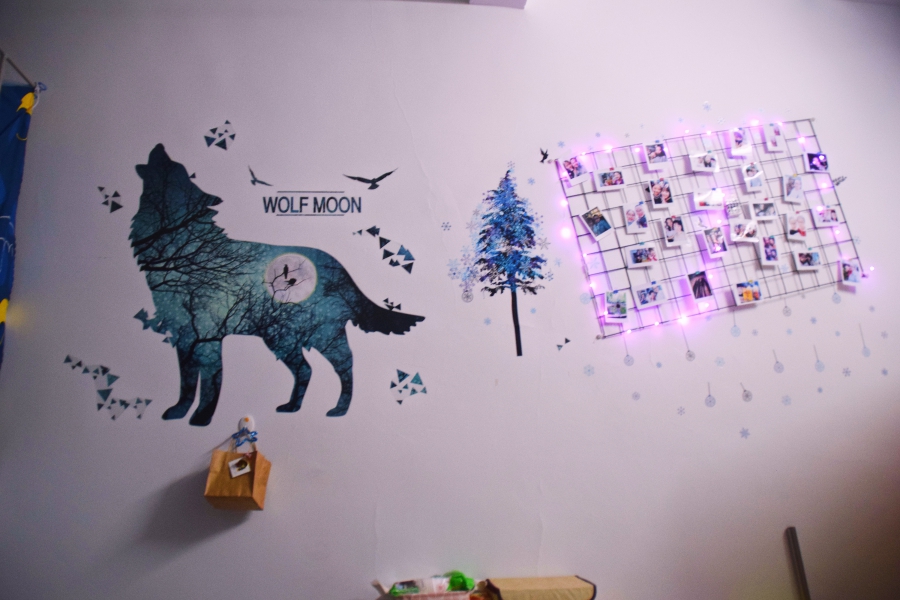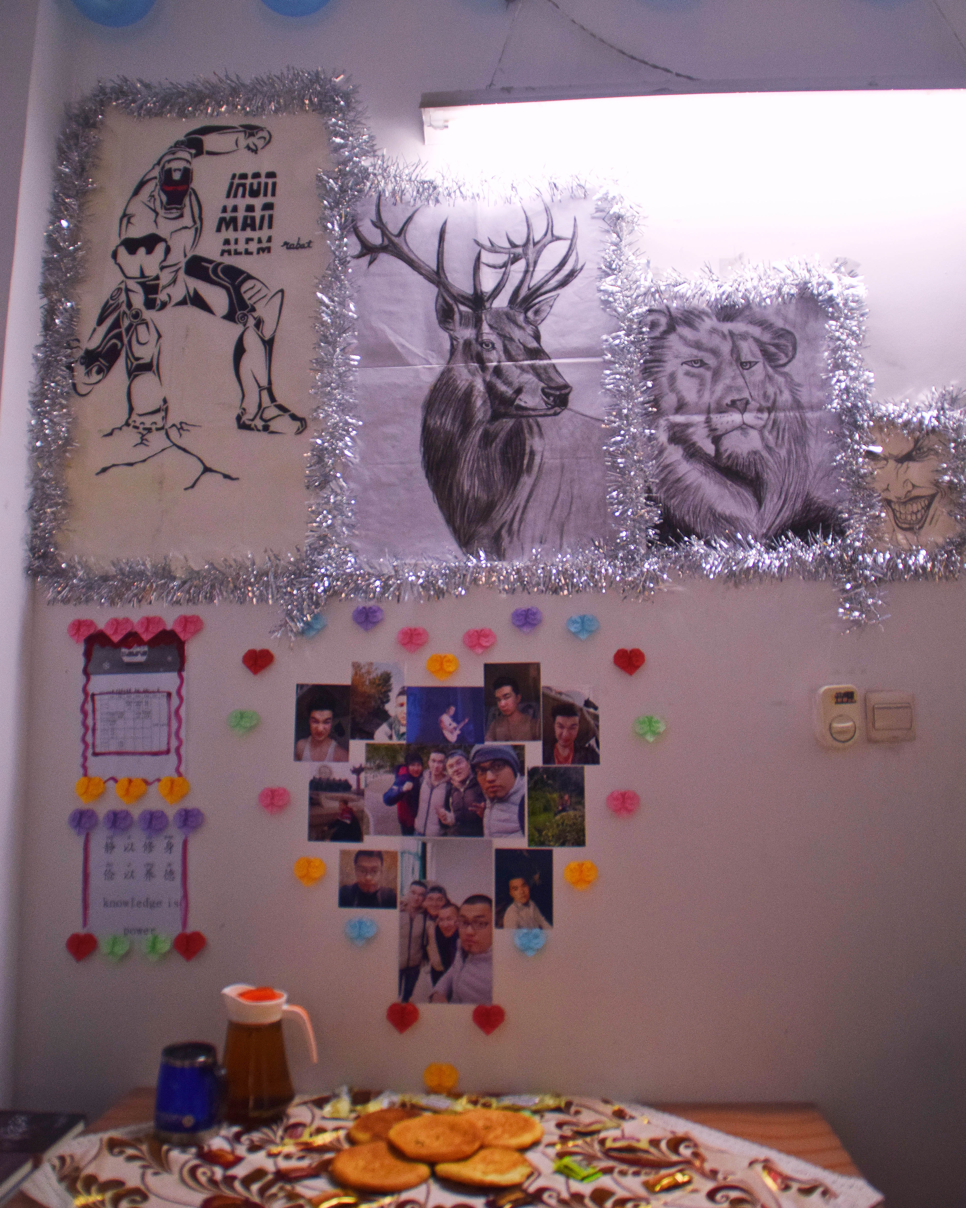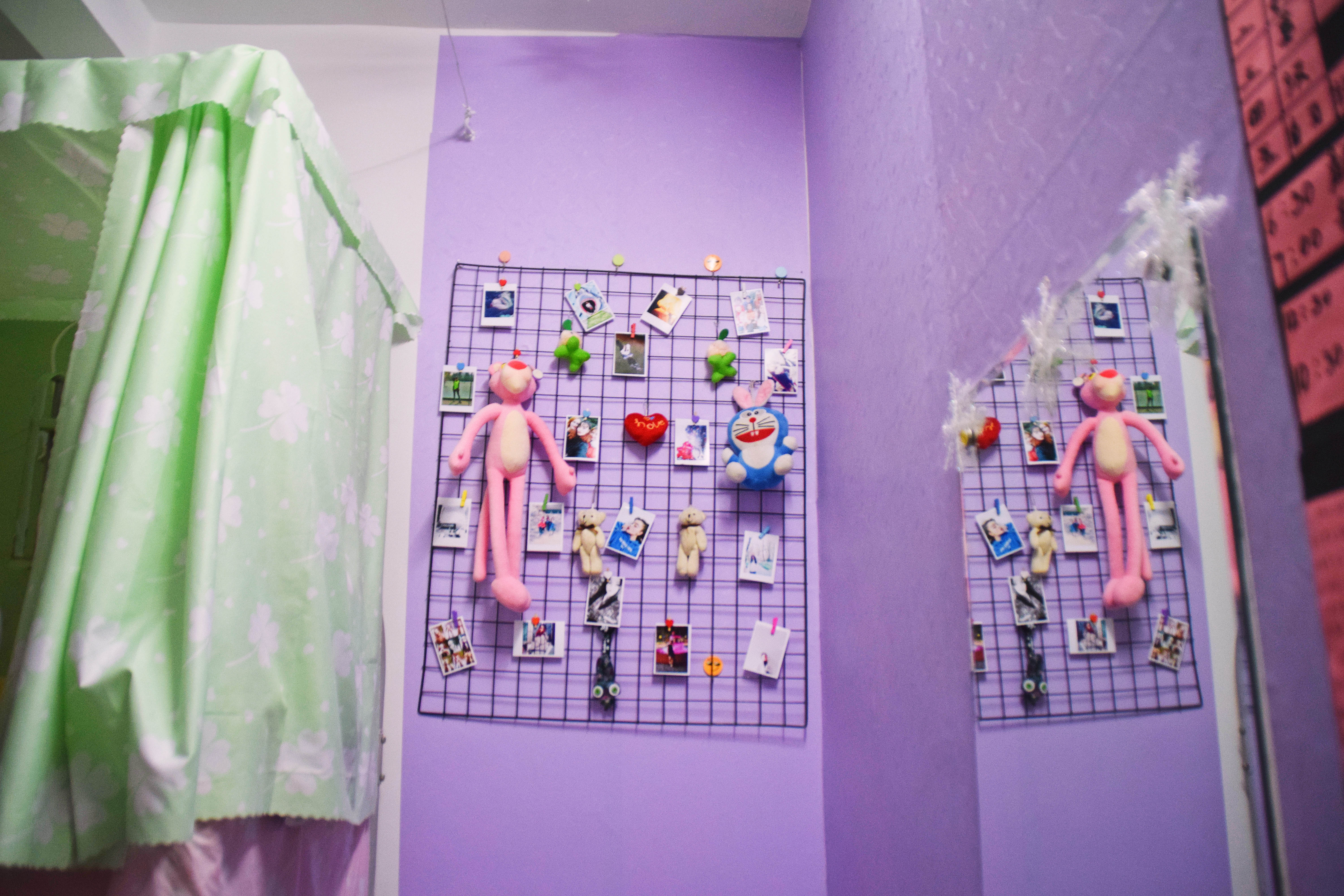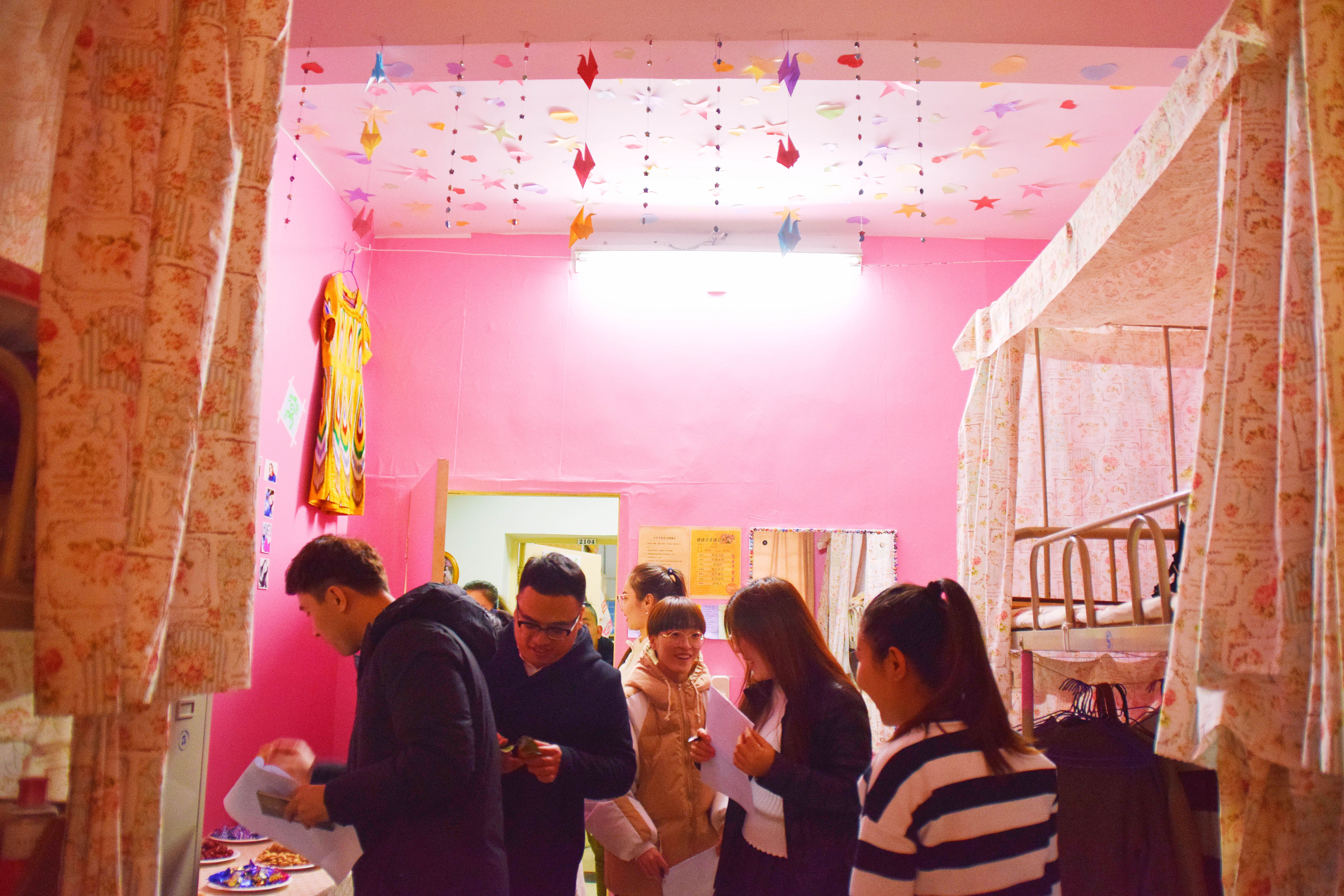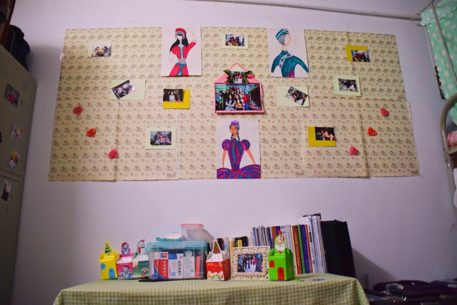 12月25日下午3点,宿舍文化节的评比活动正式开始。老师们及生活部干部先后走访参观了男生4-5号员工宿舍楼和2-3号女生宿舍楼。一进楼道,便能看见走廊上的相框里有员工们青春洋溢的笑脸,一望到小粉楼2栋三楼的走廊尽头,色彩艳丽的民族卡通画象扑入眼帘,那些别出心裁的宿舍主题风格和装扮创意更是令人眼前一亮,这些无一不显示出宿舍文化节浓厚的气氛。还有的宿舍墙上挂着的艾德莱斯绸,铺着民族风花纹桌布的桌子上摆放的馕,墙面上挂着的马头琴,都将民族文化融入生活之中。一些宿舍里挂着同学们手绘的人像画,精美的手工叠纸,得到了各位参审评委老师们的一致称赞。在参观过程中,老师们不仅对同学们参与宿舍文化节的热情表示肯定,同时对大家在宿舍评比中发现的问题提出了指导性的建议。
