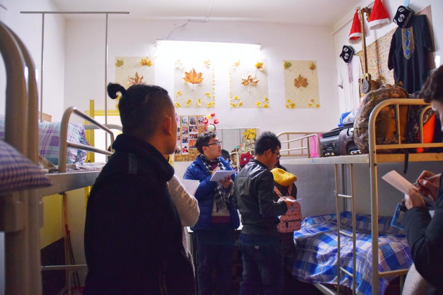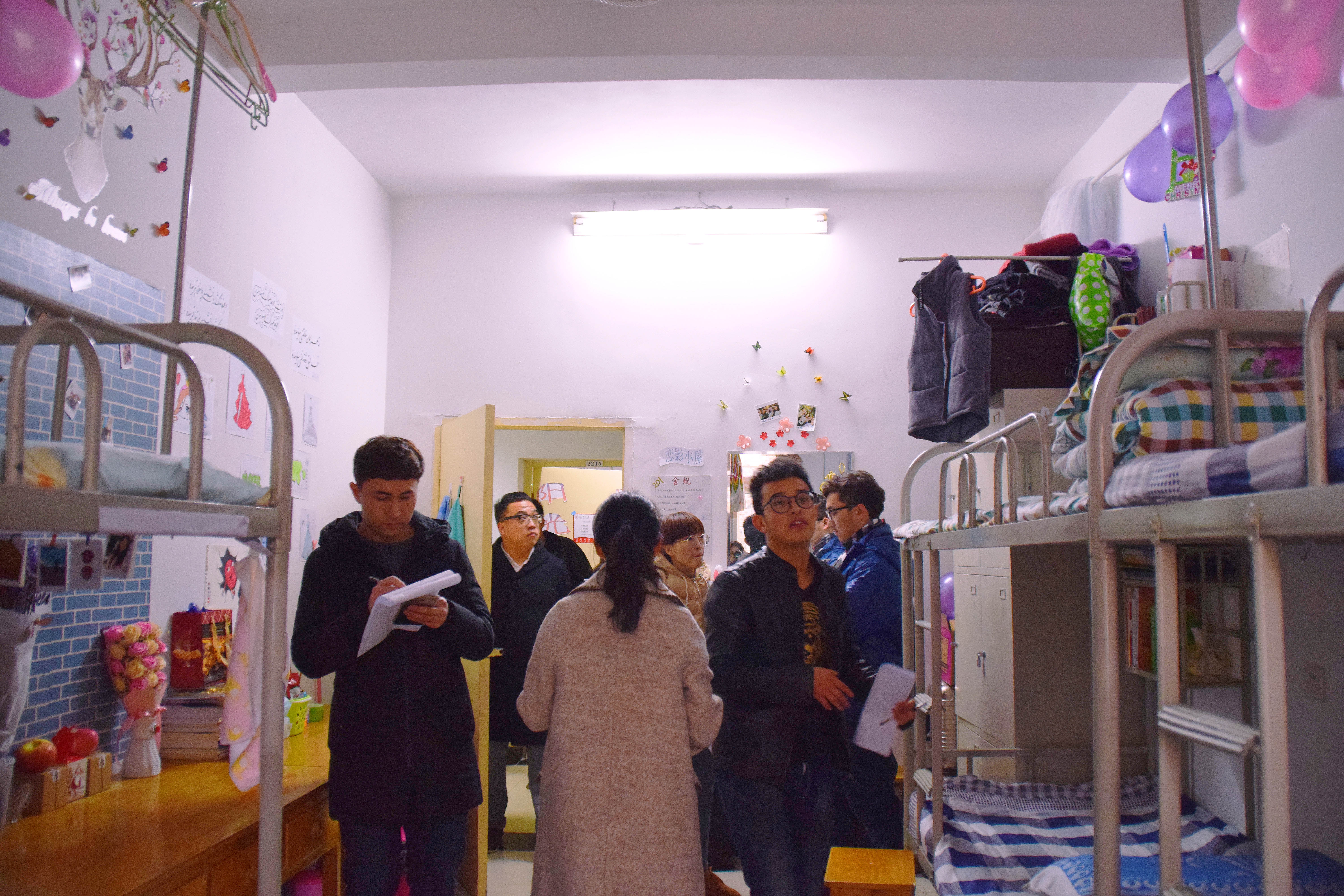 为营造良好的宿舍文化环境、建设和谐的宿舍氛围,进一步促进宿舍成员之间的交流合作,在气温骤降的12月,民教院开展了寝室文化建设评比活动,由公司学工组全体老师和员工会生活部部分成员组成评审团。