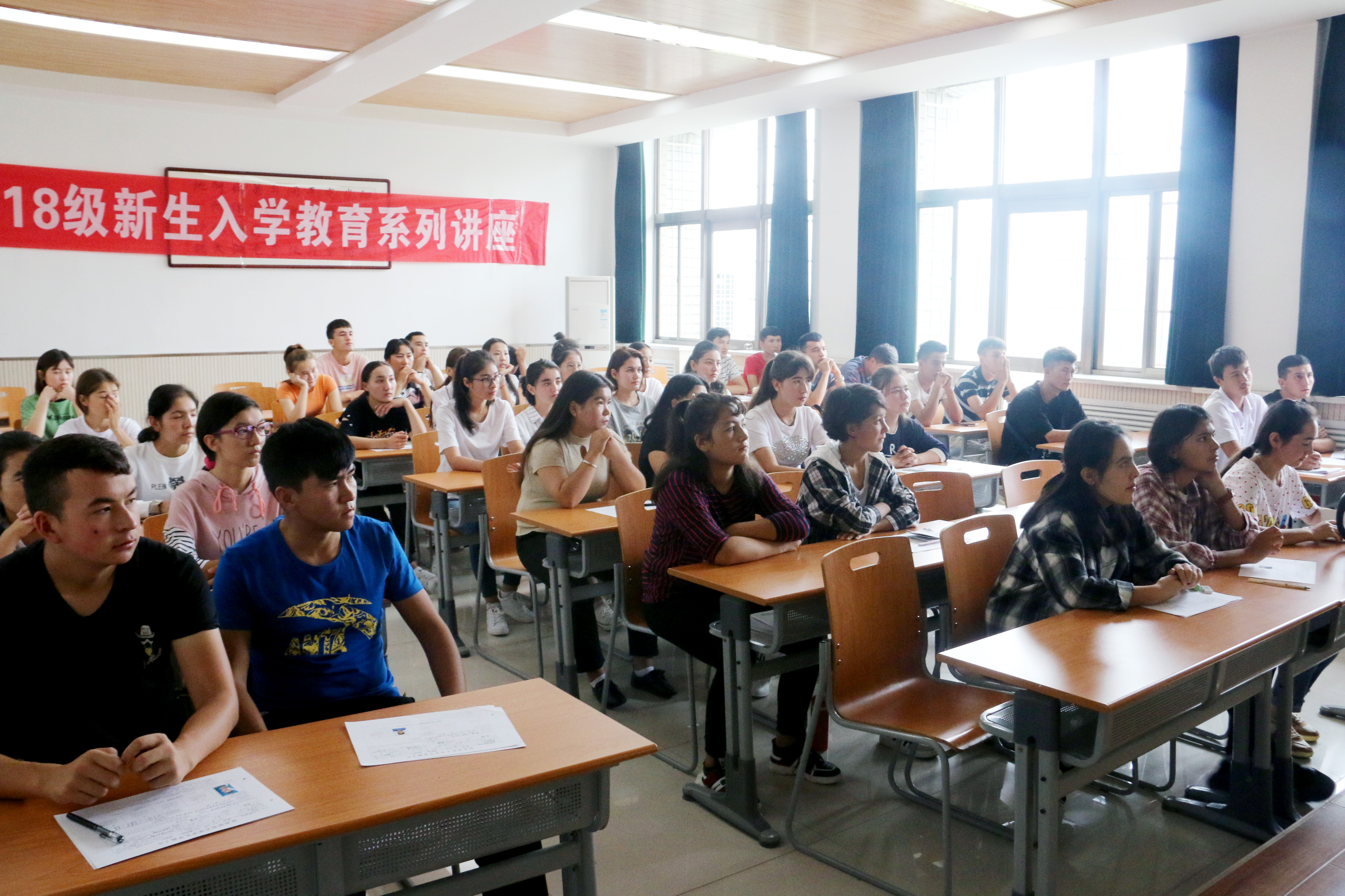 2018年9月14日上午,公司预科生入学教育系列讲座第四讲在公司雁塔校区9号教学楼9705教室开讲。本次讲座由公司党总支书记郑生忠主讲,讲座的题目为《坚定理想信念,以优异成绩为民族团结进步做贡献》。旨在进一步加强对民族预科生人生理想信念的引导,调动和提高预科生对学习的自觉性和主动性,帮助员工树立优良学风,营造积极向上,团结友爱的学习氛围。公司专职辅导员热依木和2017、2018级新疆籍预科员工参加了此次讲座。
