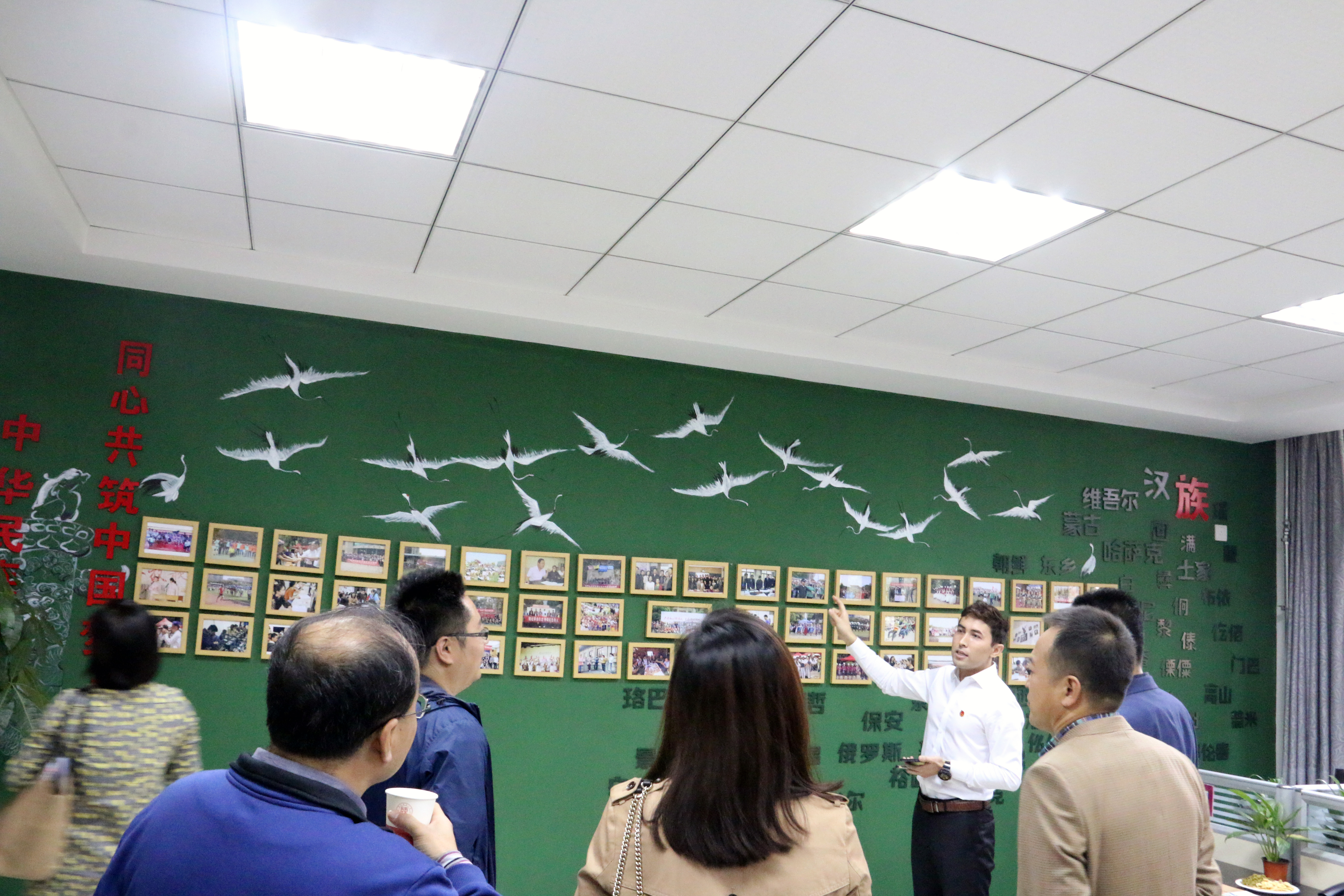 公司辅导员热依木引导大家参观了公司学工队伍办公室、公司“悦心坊”二级心理辅导站、石榴籽工作坊、民族教育成果陈列室、少数民族老员工马列理论学习中心、党团员工活动室等活动场地,并向大家介绍了以“同心共筑中国梦,中华民族一家亲”为主题的手绘文化墙,并对特色内容展示做了寓意介绍,同时也对文件柜中150余员工工作材料和员工管理制度档案盒做了简单介绍,展示了公司员工思想引领、组织建设、制度建设及特色服务活动等方面的育人内容。公司利用绿植、花卉、民族特产、为员工营造了一个清新、舒适、温暖的谈话氛围,公司工作均围绕着员工的思想政治教育工作、行政事务管理、心理健康教育和员工成长成才服务工作等方面积极探索创新,着力搭建平台,促进员工自主发展,早日成才。