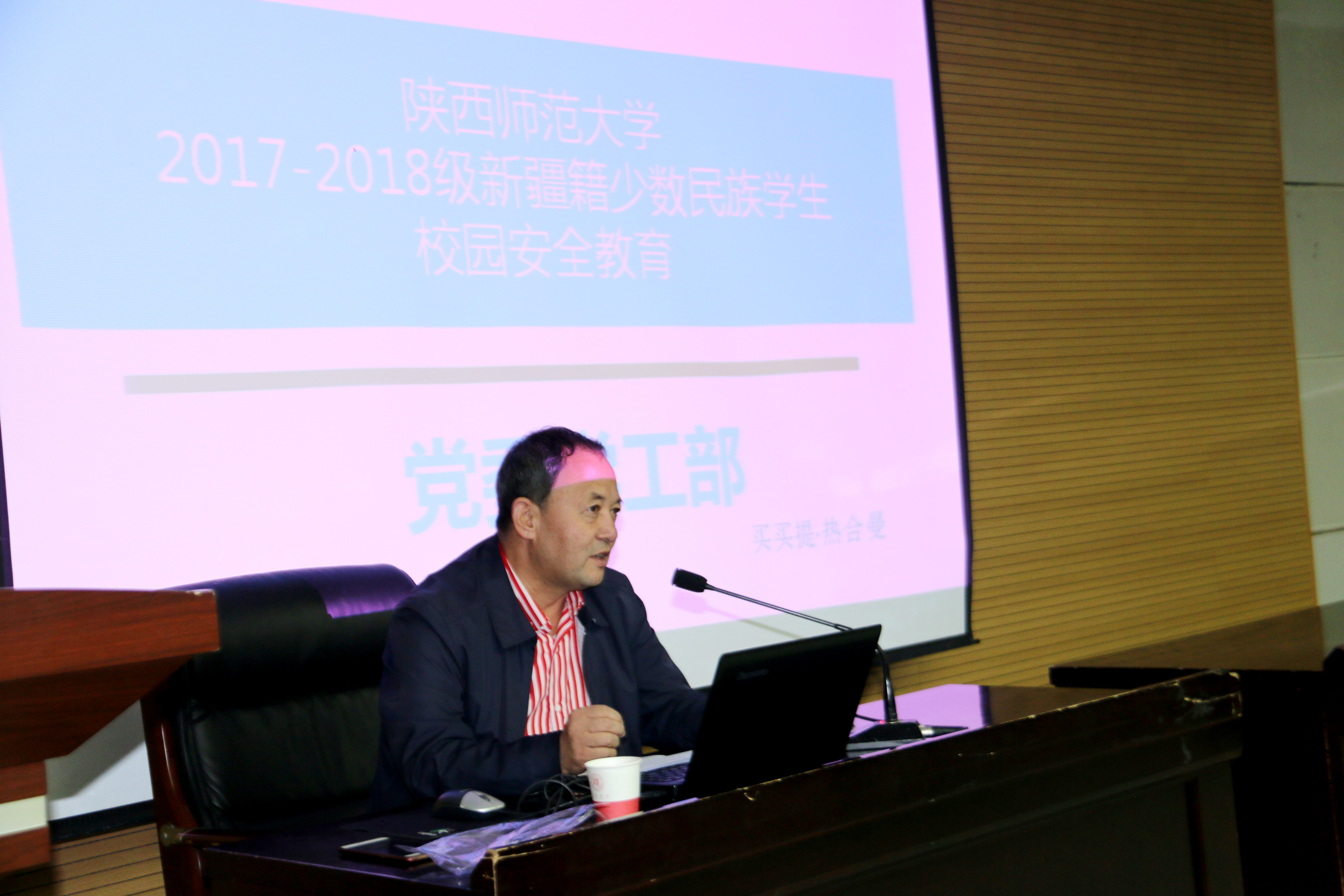 10月17日下午2:30,公司新疆内派管理服务教师买买提·热合曼为公司新疆籍少数民族员工进行了以《2017、2018级新疆籍少数民族员工校园安全教育》为题的校园安全主题讲座。讲座旨在进一步加强对少数民族预科生的思想安全教育,强化员工安全防范意识,增强法制观念,维护健康的心理状态,帮助少数民族预科生积极适应老员工活,同时协助公司做好少数民族老员工安全教育工作。新疆维吾尔自治区驻陕西工作组苏来曼·牙合甫,公司专职辅导员热依木、2017、2018级新疆籍预科员工参加了此次讲座,讲座由辅导员热依木主持。