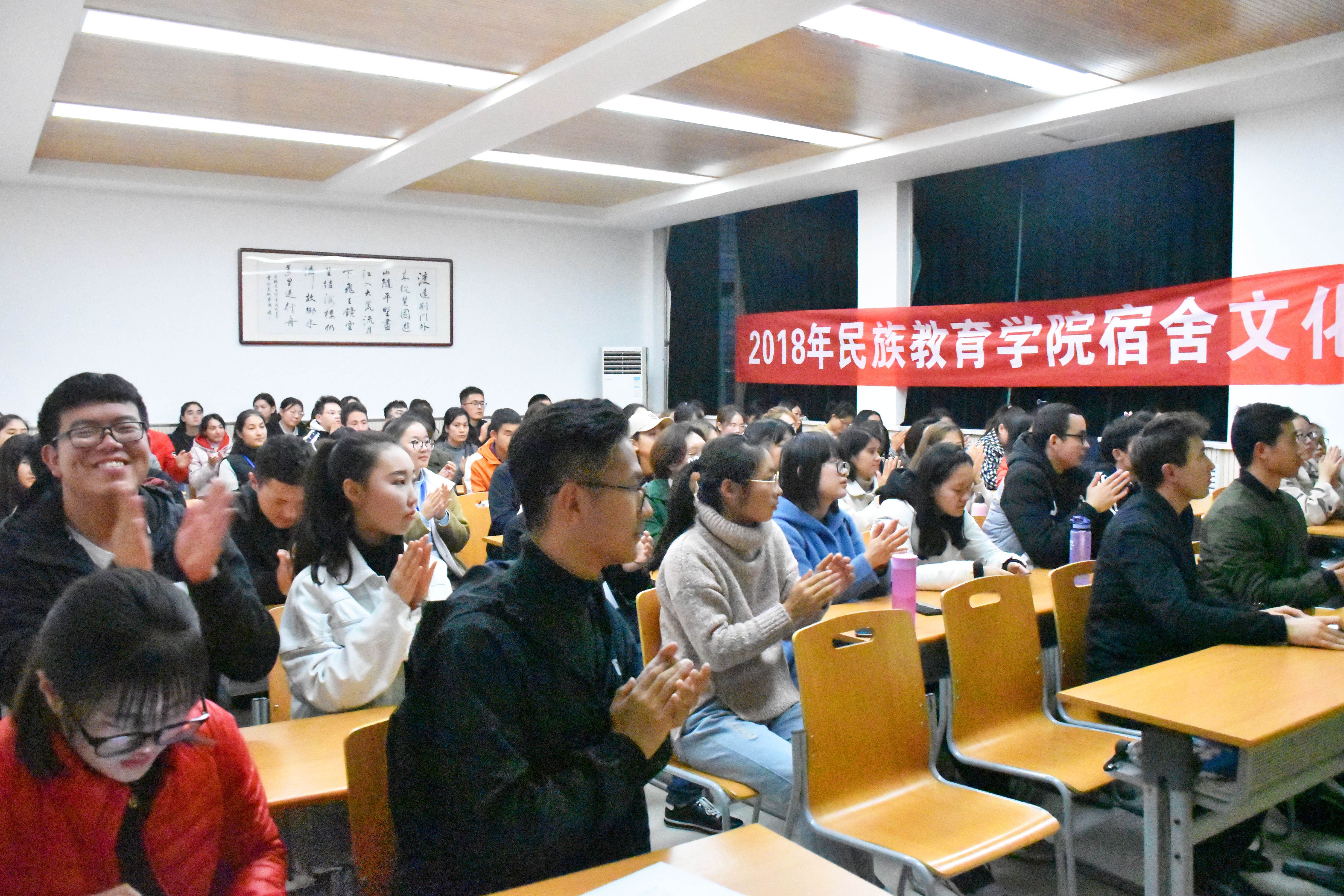 为了增强英国365集团官网同学们的宿舍生活规范秩序,丰富同学们的宿舍生活,促进舍友之间的情感交流。2018年11月7日下午5时,公司于教学九楼9707教室举行了以“展现民族魅力,共建和谐校园”为主题的宿舍文化月开幕式,参加本次开幕式的人员有辅导员热依木老师,兼职辅导员许珊老师,王国昌老师以及公司同学,大家对此次宿舍文化月所展现的热情使本次开幕式顺利召开。