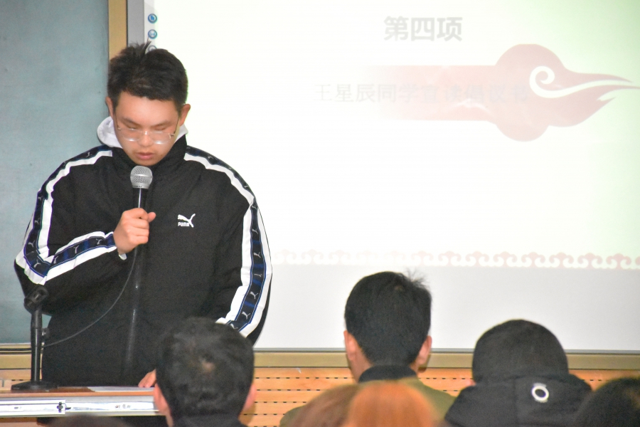 接着奥宁同学代表公司员工会向大家介绍了本届宿舍文化月的活动及注意事项,他说到,本次活动主要包括制作宿舍工艺品,宿舍文化建设,寝室配音秀等项目,以此帮助同学们养成良好习惯,促进宿舍关系,创建良好环境。