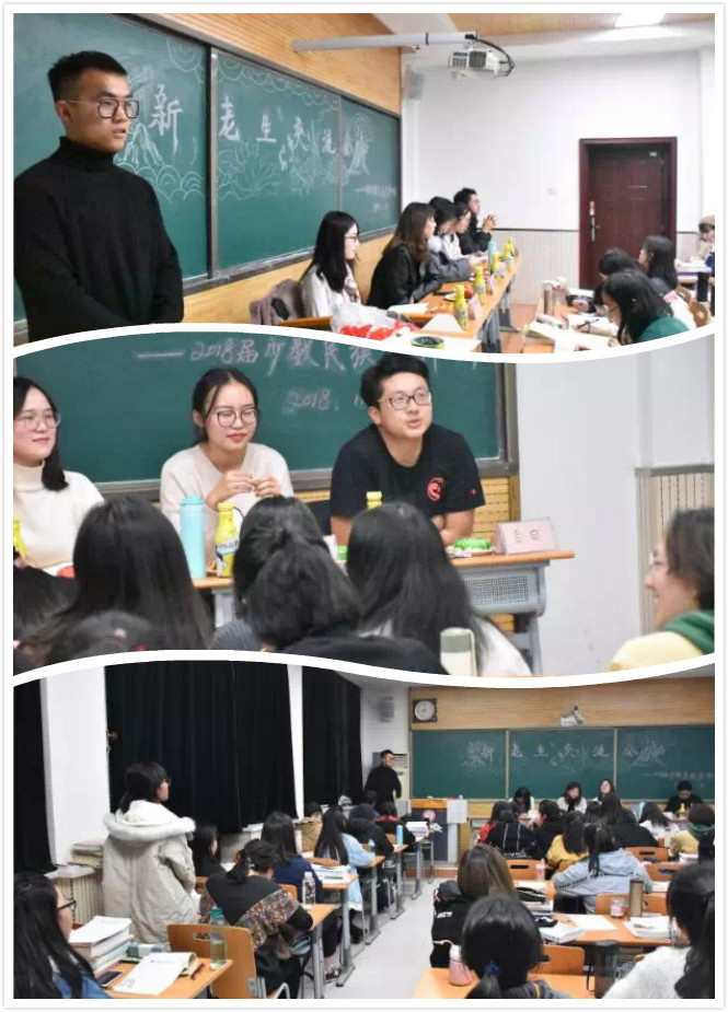 首先,是学长学姐自主介绍环节。16级员工会主席兼班长白日学长先分享了他潇洒风流的预科经历和坎坷曲折的专业选择之路,用亲身经历为大家比较了哲政院与历史公司的不同。接着,17级班长赵宁说起了自己的预科往事,她是如何在日常学习、总结和反思以及如何带动全班一起复习“英雄”的事迹。随后,熊昱婷为同学们介绍了自己所选专业内容和在外国语公司的具体感受。杨洋向大家谈起了当代新媒体的发展以及新传公司的具体情况。最后,张慧宇向大家分享了她一天的作息日程,提醒学弟学妹们要珍惜时间,不可懈怠。