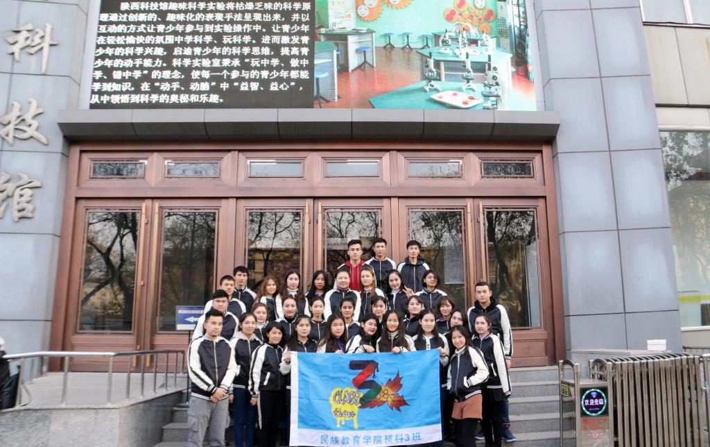 为不断增强员工“五个认同”,铸牢中华民族共同体意识,切实加强民族预科生的爱国主义和理想信念教育,感悟科技魅力,提高员工科学素养,2019年1月1日下午,在辅导员热依木和预科三班班长艾利卡木的带领下,预科三班全体员工带上班旗穿上班服前往陕西科学技术馆开展“感受科技魅力,争做时代新人”参观学习活动。