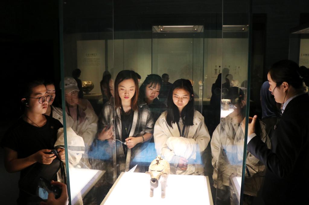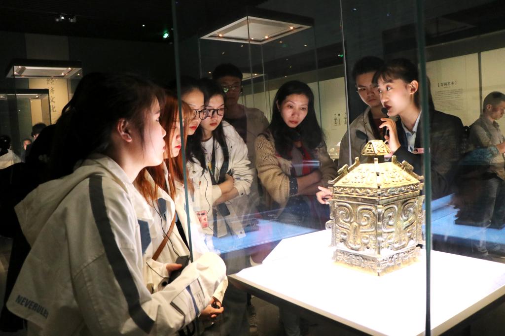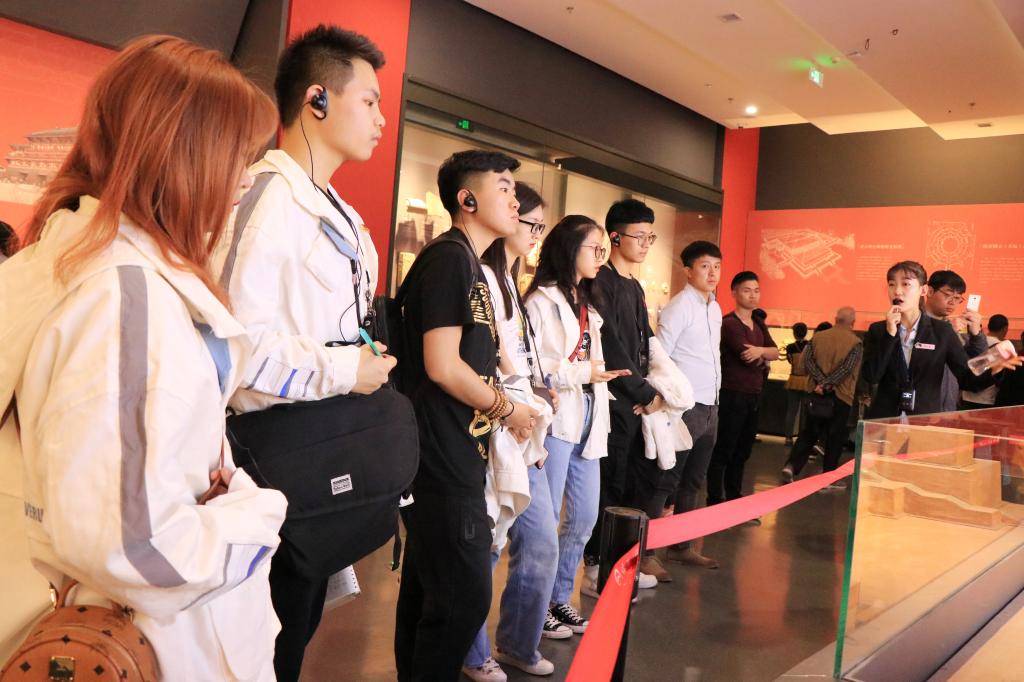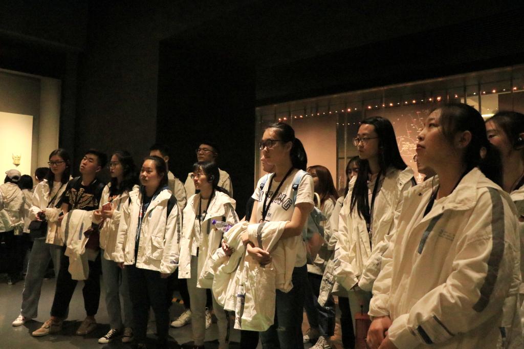 首先,下午两点同学们在师大东门集合,身着班服,有序前往博物馆共同前往陕西历史博物馆进行参观。然后同学们在解说员的讲解下,看着陕西历史博物馆琳琅满目文物,穿梭于各种瑰宝之间,感受中华民族与生俱来的智慧和勤劳。博物馆解说员以时间为线索,分别向大家介绍了从史前到明清的文物,例如饕餮纹四足鬲,彩绘十二生肖钟,玉蝉,制币工具等。在时代洪流的牵引下,同学们体会古代劳动人民的智慧,并时不时点头肯定他们的成就。最后,在一个小时的参观之后,同学们仍然沉浸于其中并一边讨论自己喜欢的文物一边走出历史博物馆的大门,并合影留念。