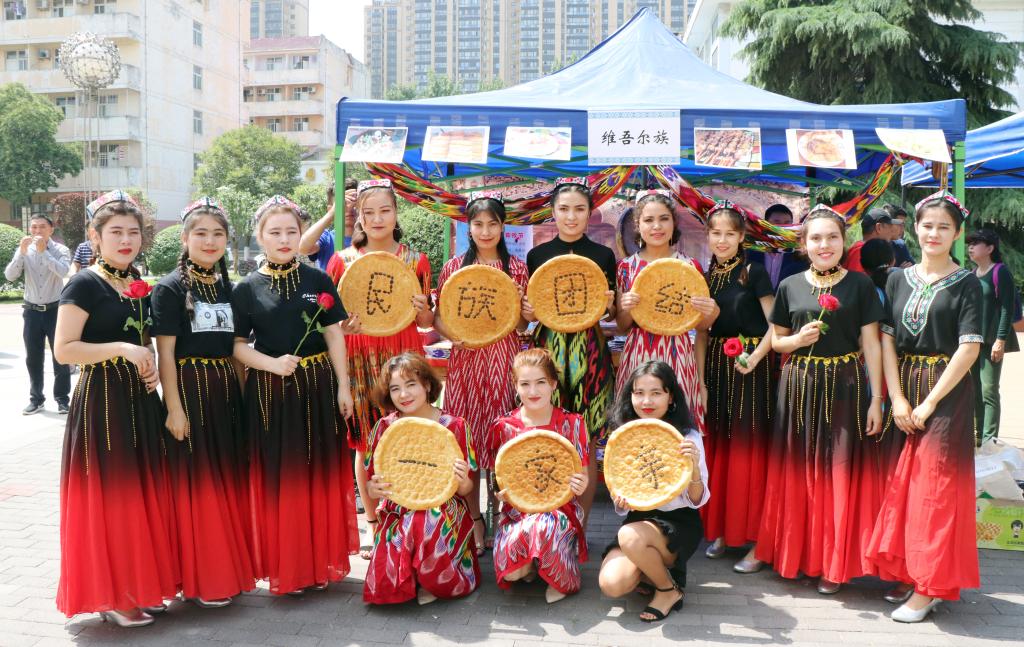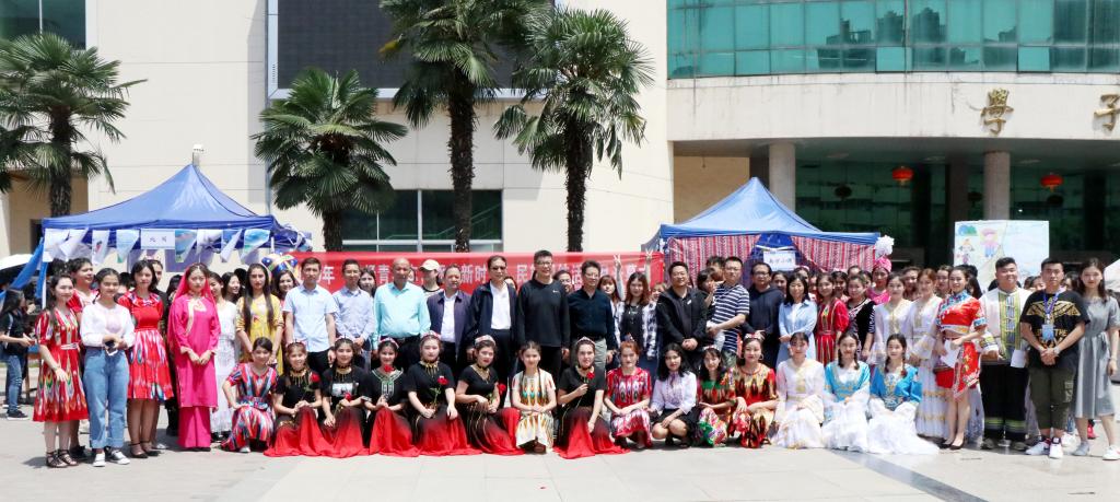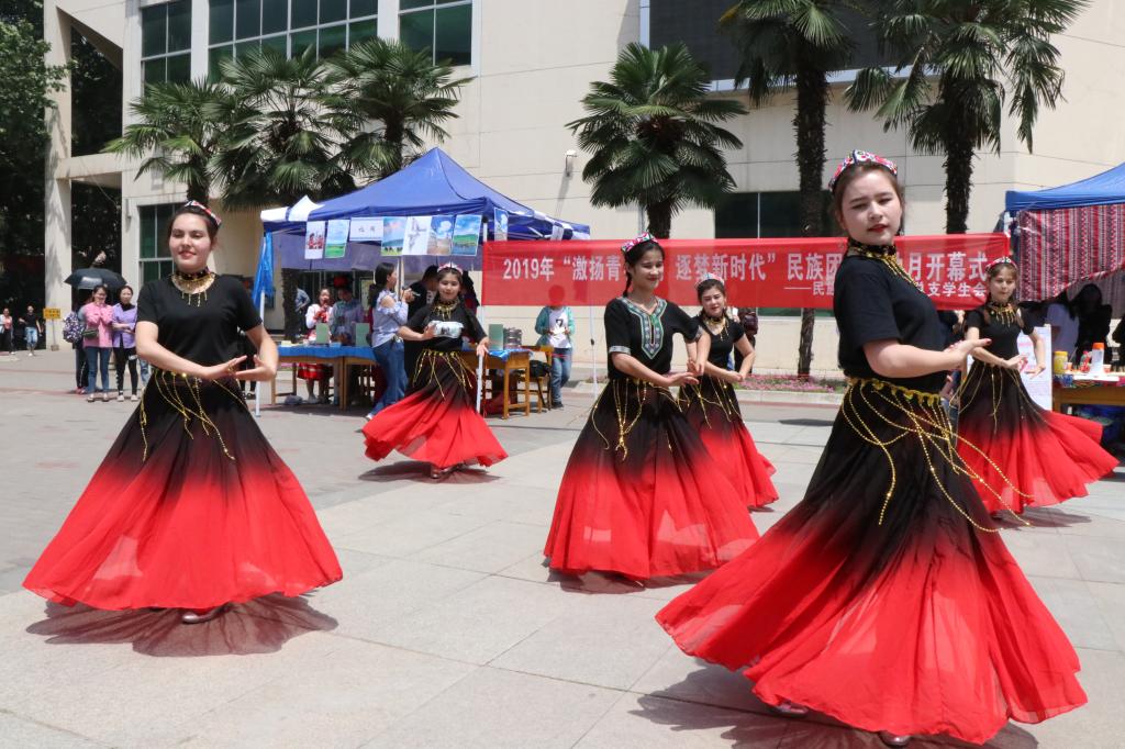 5月17日中午,英国365集团官网2019年“激扬青春志,逐梦新时代”民族团结活动月开幕式在英国上市公司365雁塔校区喷泉广场隆重举行。公司经理冯建新、党总支书记郑生忠、党总支副书记窦文阳、党委学工部(员工处)少数民族员工教育管理科干部白克阿力·艾山、新疆内派服务管理教师买买提·热合曼、孙国强、邹璐洁、教师代表戴妍、赵辉、卢静、乔露、董涛、贾文红以及公司专兼职辅导员和全体学生共同参加了此次活动。开幕式由预科一班杨昊楠同学和预科二班邹粤龙同学主持。
