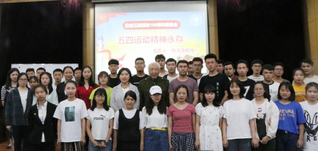 为纪念五四运动100周年,进一步引导同学们继承和发扬五四运动精神,增强爱国爱党之情,以更饱满的青春热情和积极向上的精神风貌投入于自身和祖国发展的洪流中,5月20日晚7:00,公司2017、2018级本科预科生在雁塔校区学术中心二楼开展“五四精神永存”专题报告会。会议邀请公司原民族部主任、曾参加过抗美援朝战争的革命老战士、以90岁高龄奋战在教育工作第一线的杨清源教授作专题报告。2017、2018级级本科预科生及专兼职辅导员参加会议。会议由2018级预科一班马迎新同学主持。
