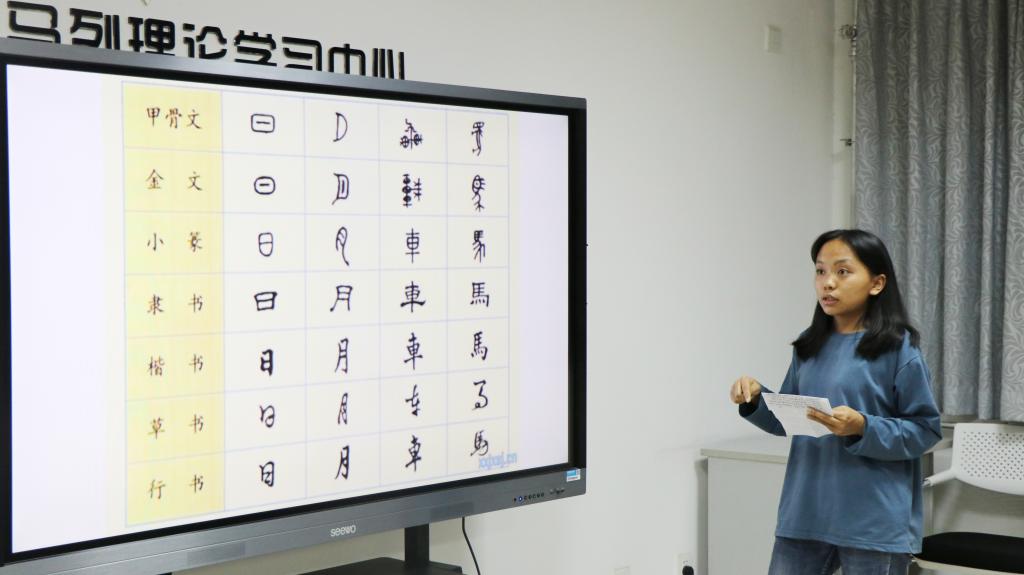 本次活动主要以怎样有效的学好语文、讲好普通话为核心,向大家介绍了语文中的“言语形式”和“语文素养”,正确把握运用语言的人文性和工具性的平衡。活动伊始,预科二班施丽红同学的“相约语文课”使大家带入了主题学习,她分别以经典诗词,小说、散文为例介绍了不同的文学题材,为大家普及了汉字的演变过程,让同学们进一步了解了学习语文课的目的,并清楚地认识到学习语文的重要性,从而帮助同学们形成良好的学习目标。