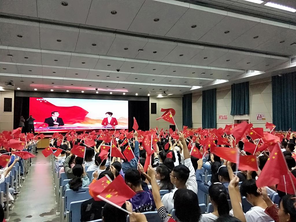 新中国成立70周年主题活动是中华民族的一大盛事,为人民群众和公司师生所企盼。为了使师生能及时收看相关精彩盛况,公司配合公司各部门,分别在公司305会议室、雁塔校区积学堂以及长安校区新勇活动中心等直播点组织师生一起观看庆祝大会。