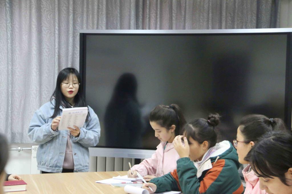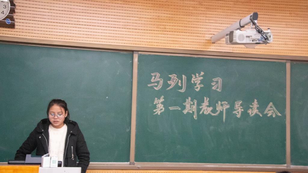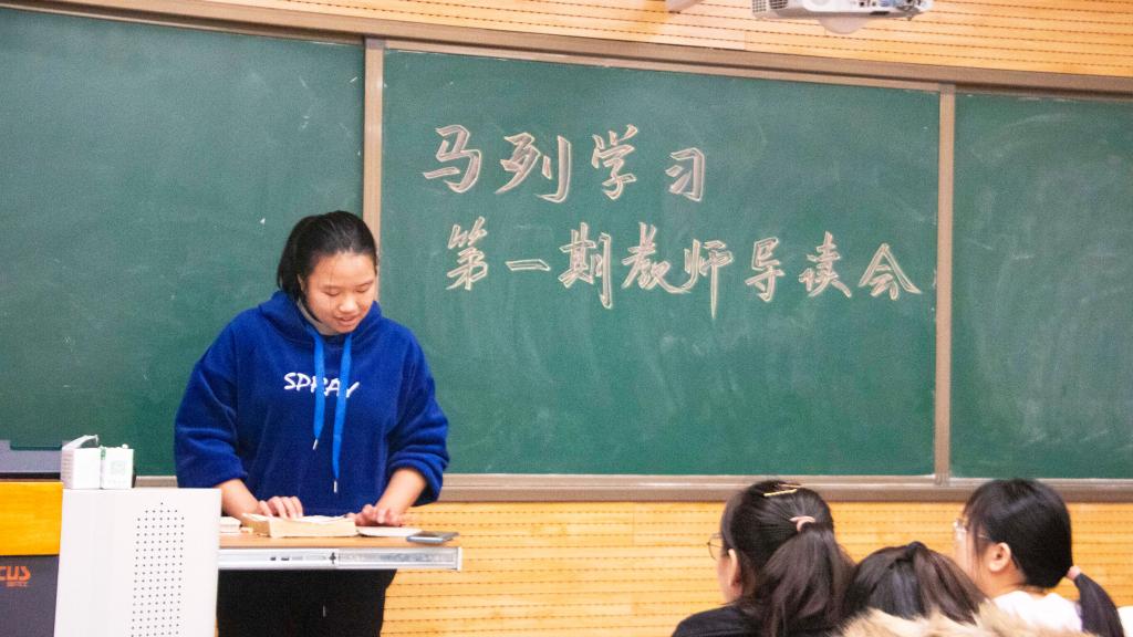 本学期第一期经典导读会在教学九楼9705教室举行,谢欣然老师给同学们进行了阅读指导,参加活动的有公司部分同学以及少数民族员工马列理论学习中心全体成员,马列理论学习中心部长陈鹏帆主持本次活动。