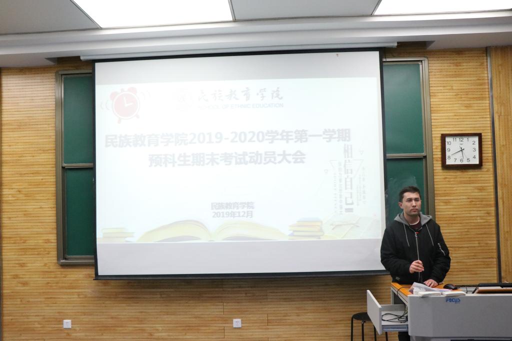 为严肃考风考纪,倡导诚信考试风尚,进一步落实公司学风教育,加强学风建设,发挥员工工作的主动性、积极性和示范性,动员全院预科生以更加饱满的状态迎接期末考试,12月16日下午,公司于雁塔校区五号教学楼5101教室召开2019-2020学年度第一学期期末考试动员大会。公司党总支副书记窦文阳、团总支书记赵超、专兼职辅导热依木、许珊、冯祎洁以及全院137名预科生参加会议,会议由公司专职辅导员热依木主持。