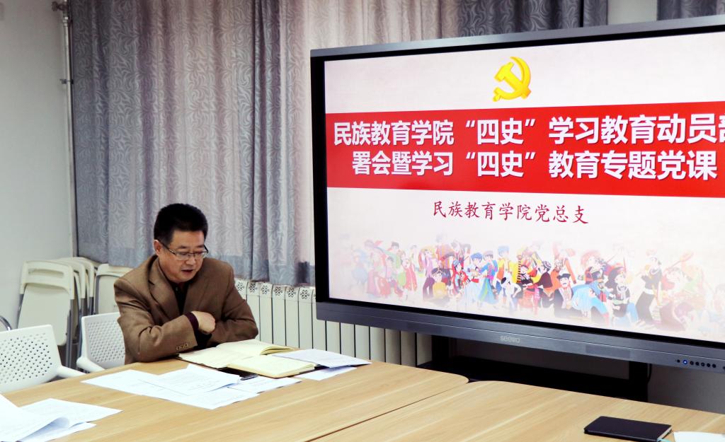 为贯彻落实教育部办公厅“关于在全国高校师生中开展党史、新中国史、改革开放史、社会主义发展史学习教育及新冠肺炎疫情防控知识竞答讲述活动”的通知精神,根据公司相关文件及通知要求,进一步推动民族教育公司干部、党员和教职工学好党史、新中国史、改革开放史、社会主义发展史(以下简称“四史”),深刻把握学习“四史”的价值蕴含和实践要求,在走心中入心,在学思中内化,在实践中升华,真正做到学思用贯通、知信行统一。11月4日下午3:00,公司在六附楼305会议室召开“四史”学习教育动员部署会暨专题党课。公司党总支书记郑生忠讲话并作专题党课,公司全体教职工参加会议。