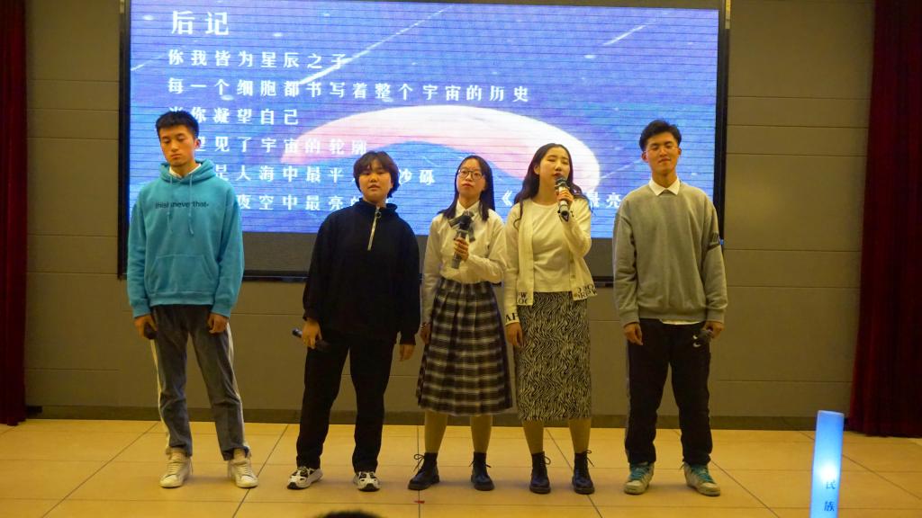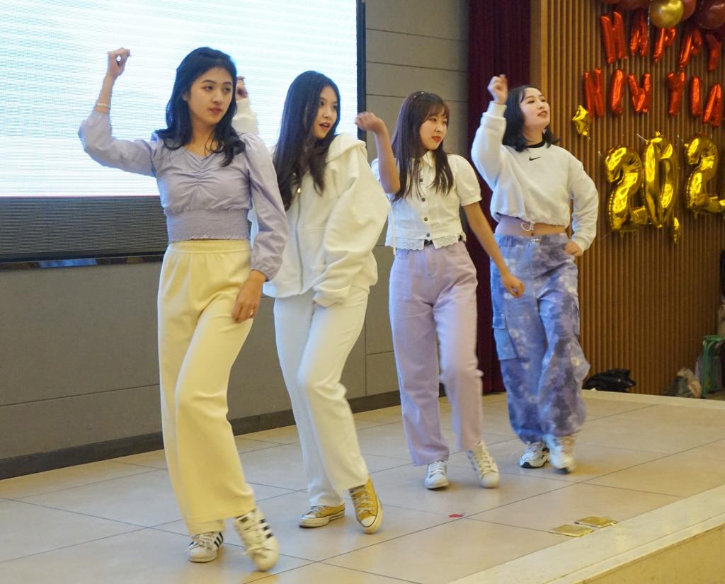 晚会伊始,工作人员放映暖场视频,视频中有来自公司老师、同学们对新年的祝福,还有开学以来同学们共同成长的点点滴滴,更有兄弟公司对公司的新年祝福。窦文阳老师为同学带来新年致辞,向大家表达了新年的祝福,同时希望同学们新年新气象,充满斗志,脚踏实地,胸怀梦想,不断向前。倒计时结束,炫酷的开场舞展现了民教学子的青春活力。随后主持人宣布晚会正式开始