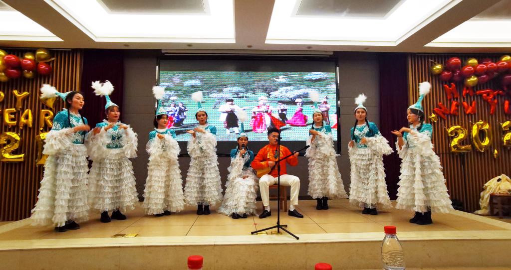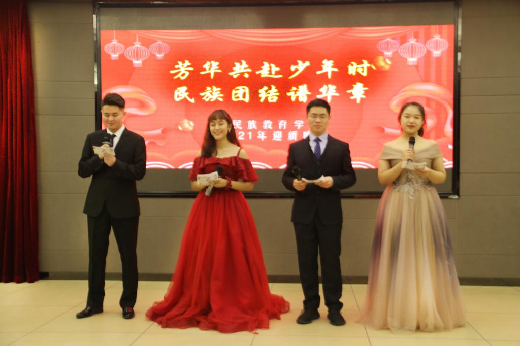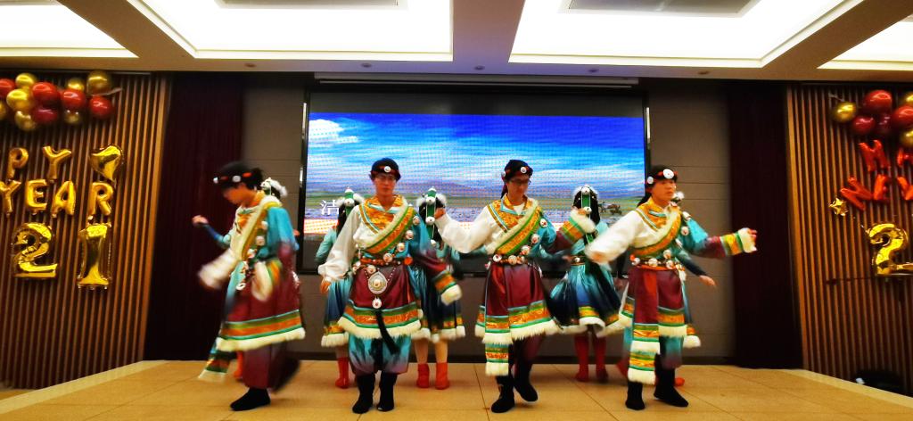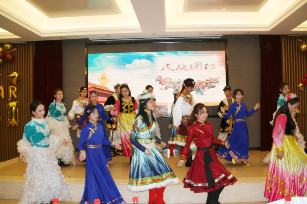 为庆祝公司成立四十周年,迎接2021新年的到来,12月19日19时,由公司员工会主办,以“芳华共赴少年时,民族团结谱华章”为主题的迎新晚会在公司雁塔区启夏苑二楼多功能厅拉开帷幕。党总支书记郑生忠,党总支副书记、副经理窦文阳,新疆内派管理服务教师买买提·热合曼,孙国强,教师代表段亚绒、戴妍、乔露、高立权及各班辅导员出席本次晚会。