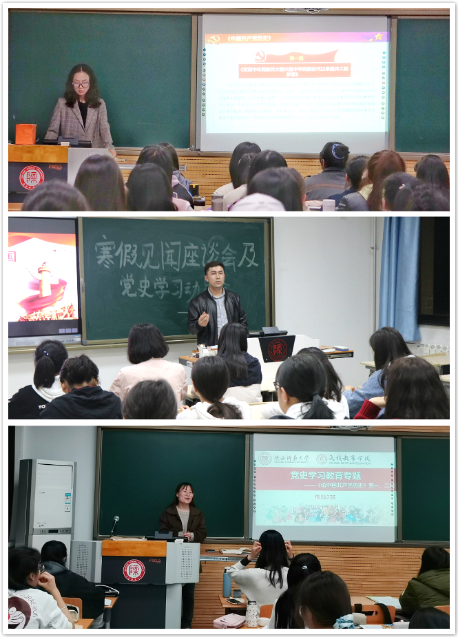 在本次专题学习教育中,各班专兼职辅导员带领员工学习习近平《论中国共产党历史》第一篇、第二篇文章,随后各班同学结合自身学习和生活实际,就党史学习内容展开热议。