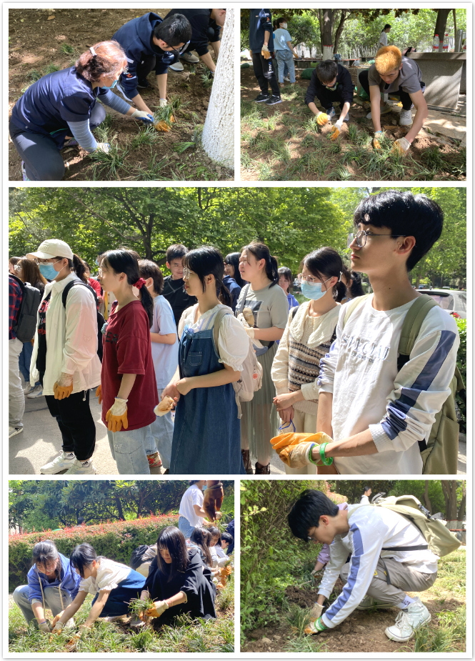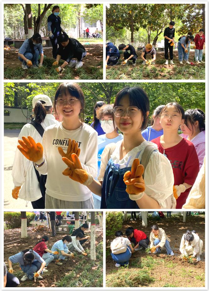 活动现场同学们劳动热情高涨。在工作人员的指导下,同学们分工明确,干劲十足。同学们戴上了手套,拿起小铲子开始种草。经过一个半小时的努力,原本光秃秃的土地被绿草覆盖,展现出勃勃生机。