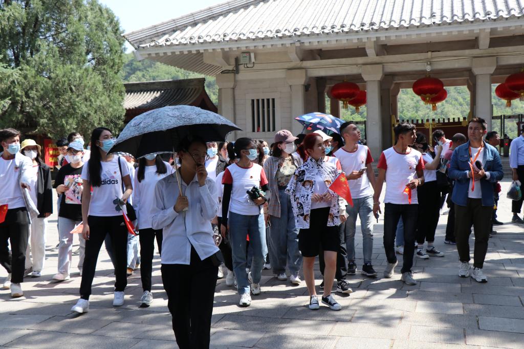 在参观黄帝陵时,师生们认真聆听讲解员为大家讲述中华民族始祖黄帝轩辕氏的传奇史诗,在轩辕庙瞻仰了黄帝手植柏、香港澳门回归纪念碑、碑亭、人文初祖大殿及祭祀大殿、了解黄帝陵,铭记中华民族生生不息的民族象征。