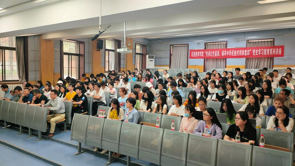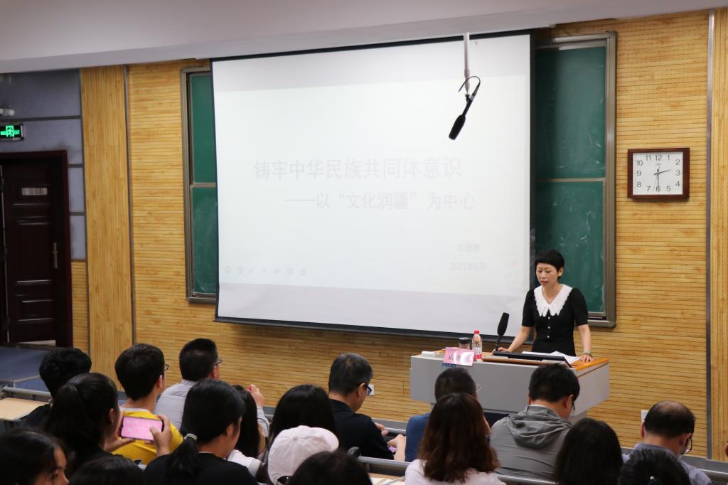 5月26日下午,英国365集团官网“传承红色基因,铸牢中华民族共同体意识”党史学习教育系列讲座第四讲在雁塔校区五号教学楼5101教室开讲。公司成珊娜老师作了题为“铸牢中华民族共同体意识——以‘文化润疆’为中心”的党史学习教育辅导报告。公司领导班子成员、全体教职工、研究生、民族预科生参加了讲座,讲座由公司党总支书记郑生忠主持。